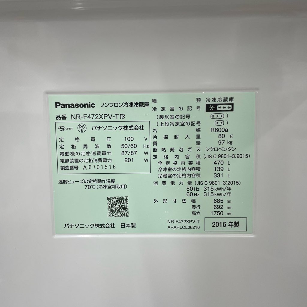 型番:NR-F472XPV-T