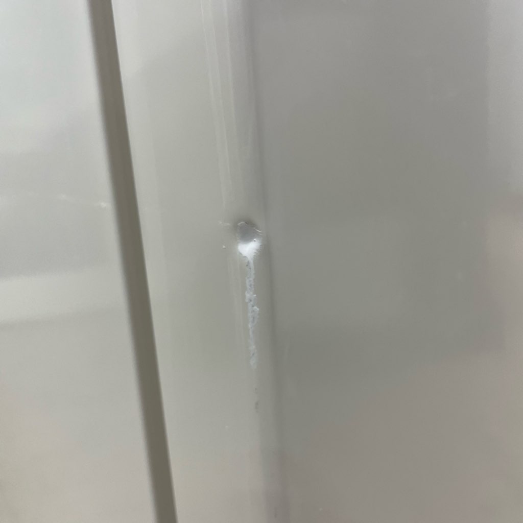 扉角に少しへこみがあります。