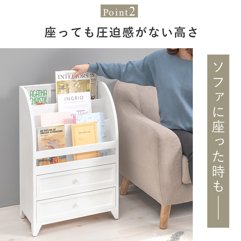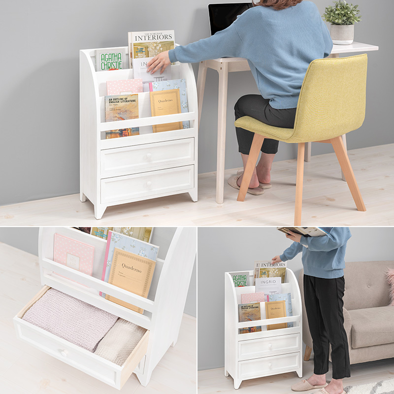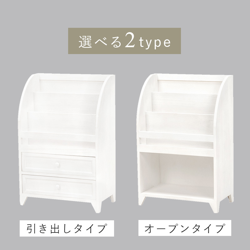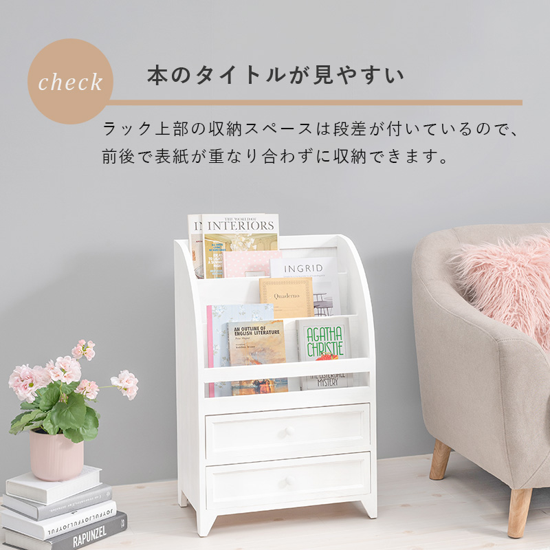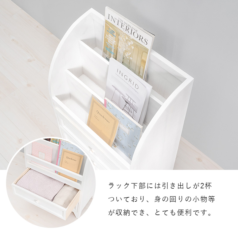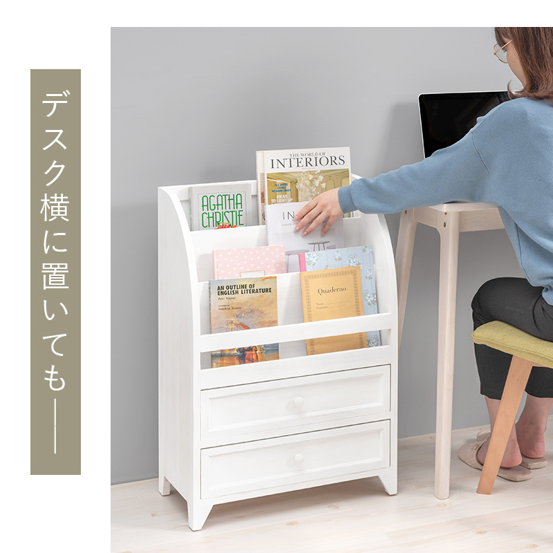 【完成品】幅48cm シャビーホワイトがかわいいブックラック 引き出しタイプ