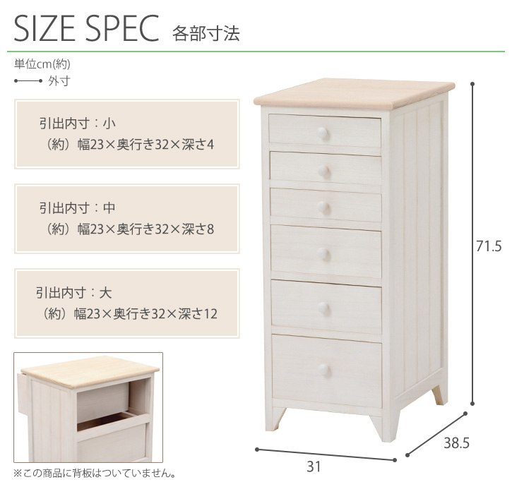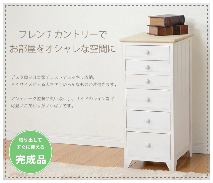【完成品】幅31cm ナチュラルテイストがかわいい チェスト 6段タイプ
