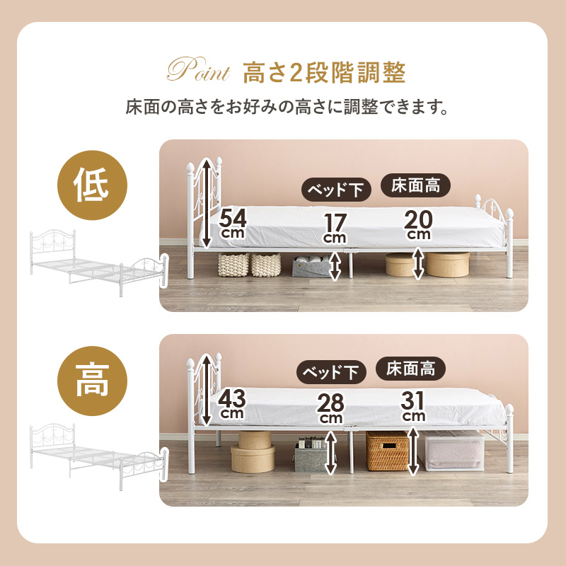 シンプルですっきりしたフォルムにリボンの装飾をあしらった可愛いベッドフレーム。
