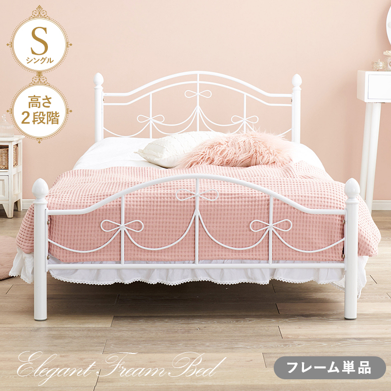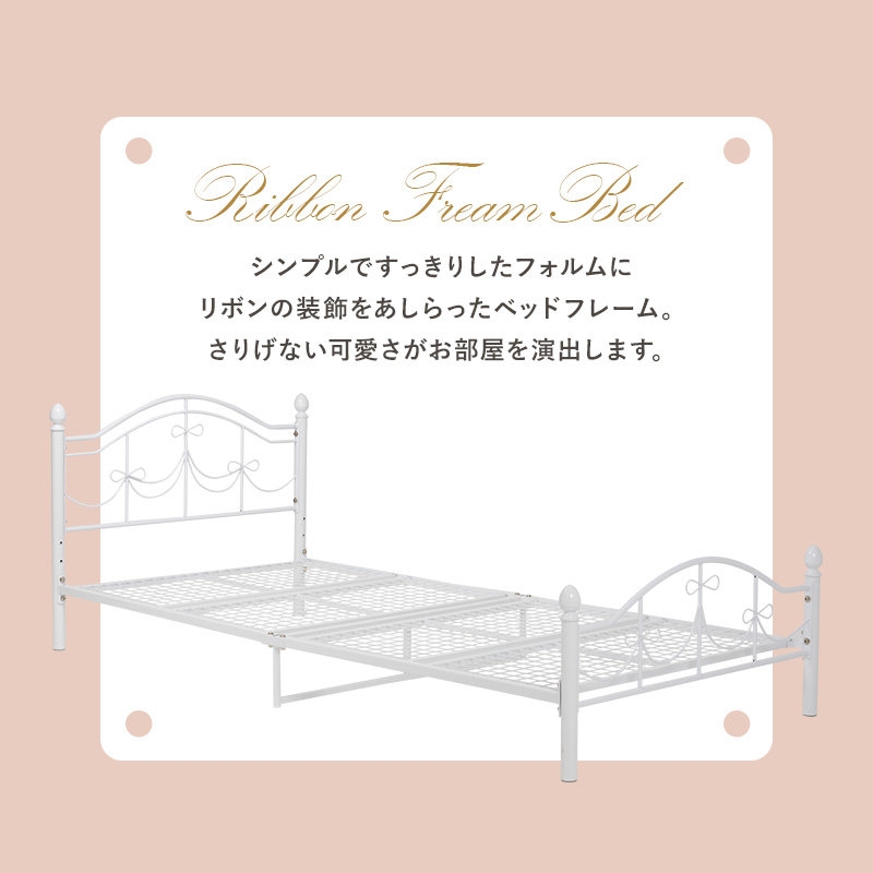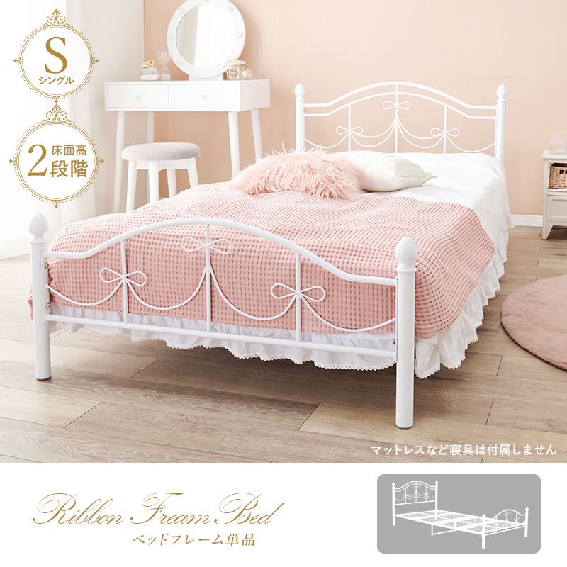 【フレームのみ】リボンの装飾が可愛いシングルベッド