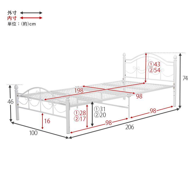 (約)幅100×奥行206×高さ74×床面高31/20cm