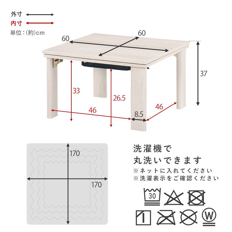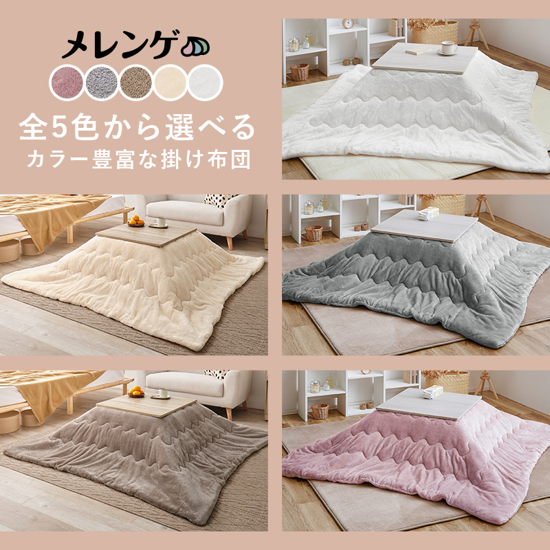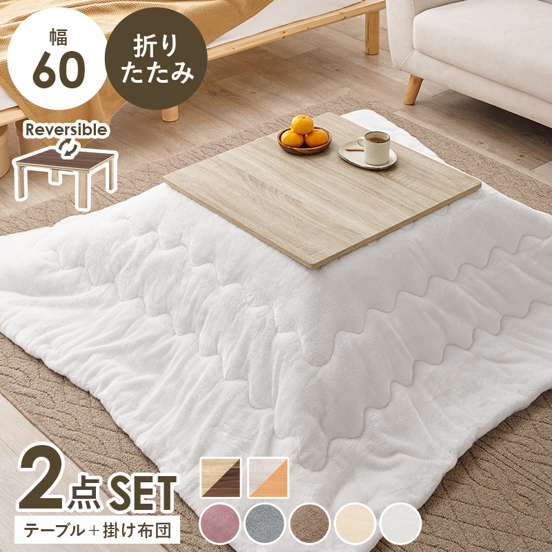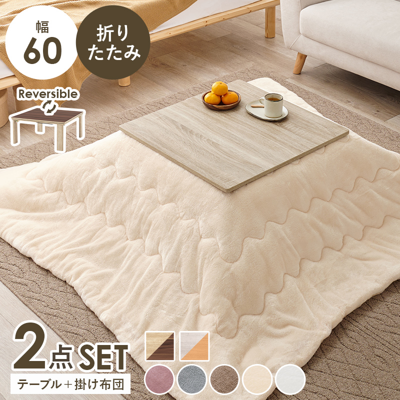 シンプルなデザインで天板リバーシブル、収納に便利な折れ脚コタツ。とろけるような肌触りのシンプルな掛け布団セット。