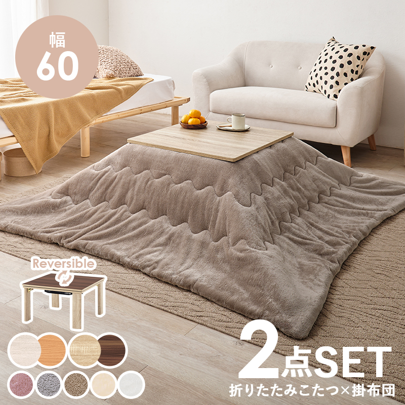 【こたつ+うす掛け布団】10種展開 幅68cm 天板リバーシブル折れ脚こたつ 2点セット