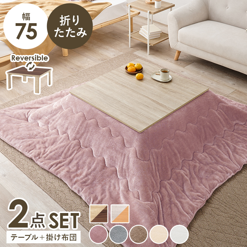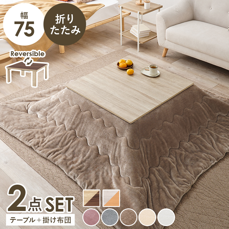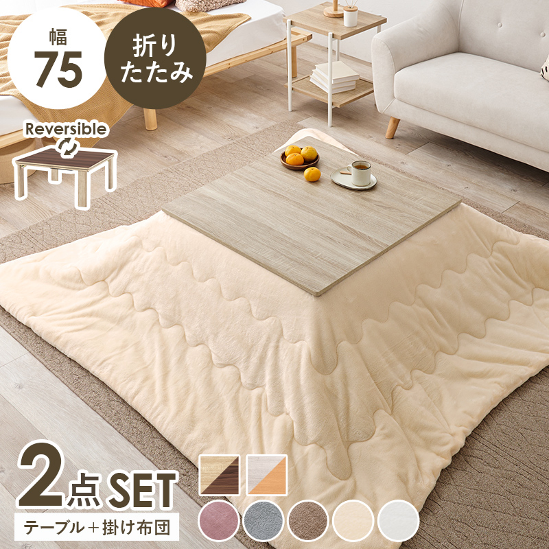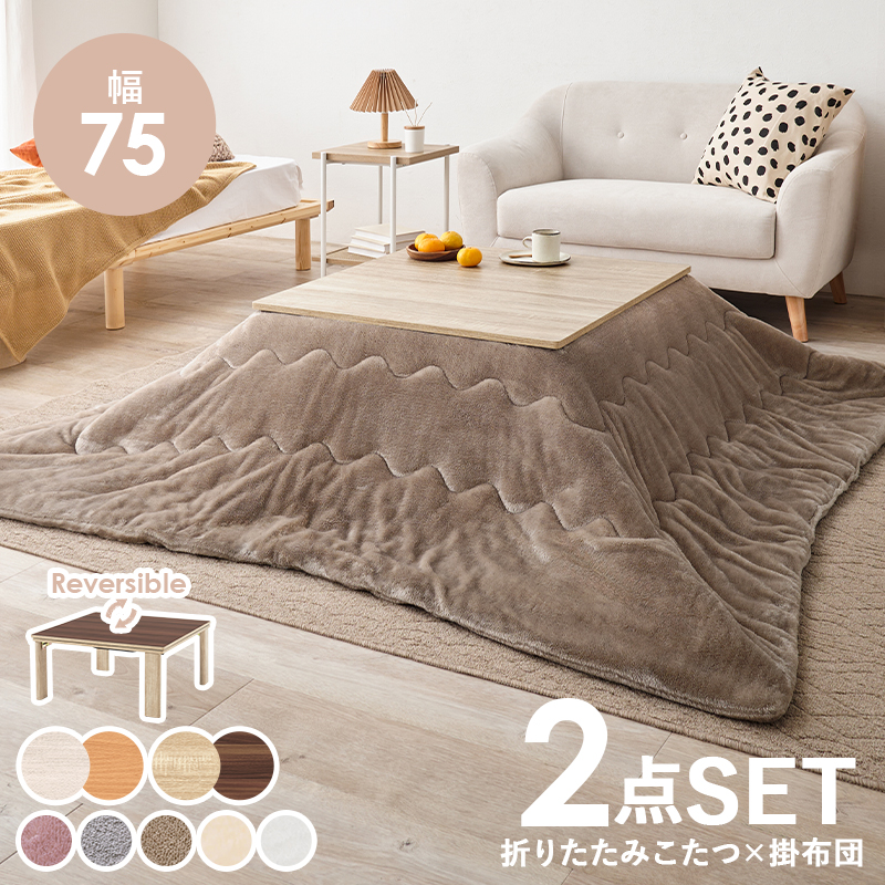 【こたつ+うす掛け布団】10種展開 幅75cm 天板リバーシブル折れ脚こたつ 2点セット