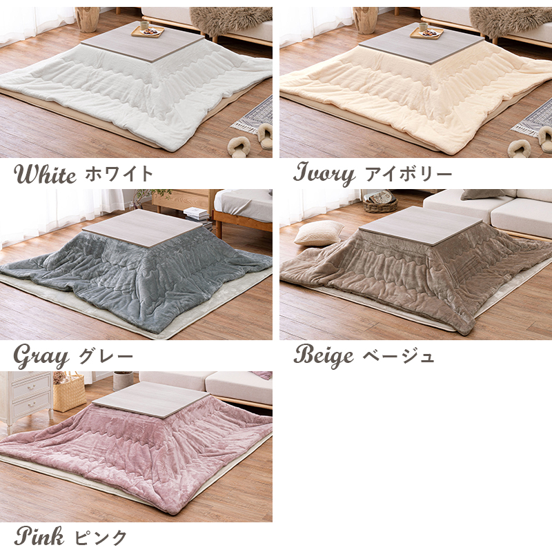 シンプルなデザインで天板リバーシブル、収納に便利な折れ脚コタツ。とろけるような肌触りのシンプルな掛け布団セット。