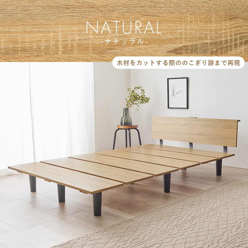 【2色展開】木目と黒い脚がスタイリッシュなベッド ポケットコイルマットレスセット セミダブルサイズ ナチュラルorブラウン