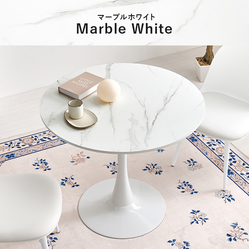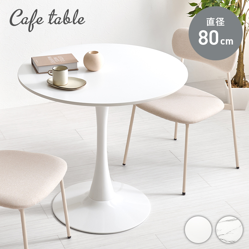 【2色展開】80cm 曲線が美しいカフェテーブル ホワイトorマーブルホワイト