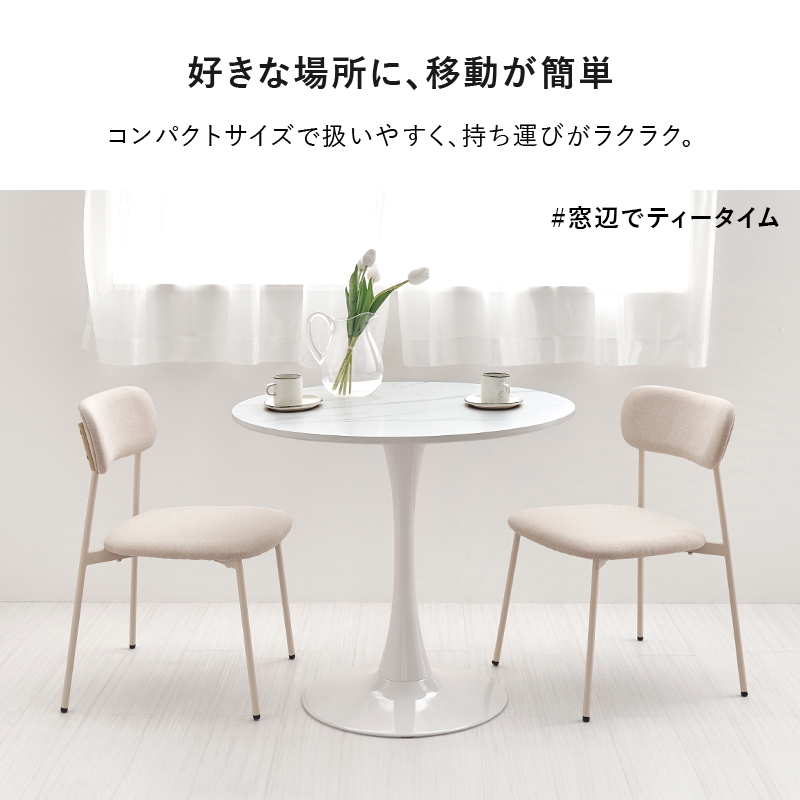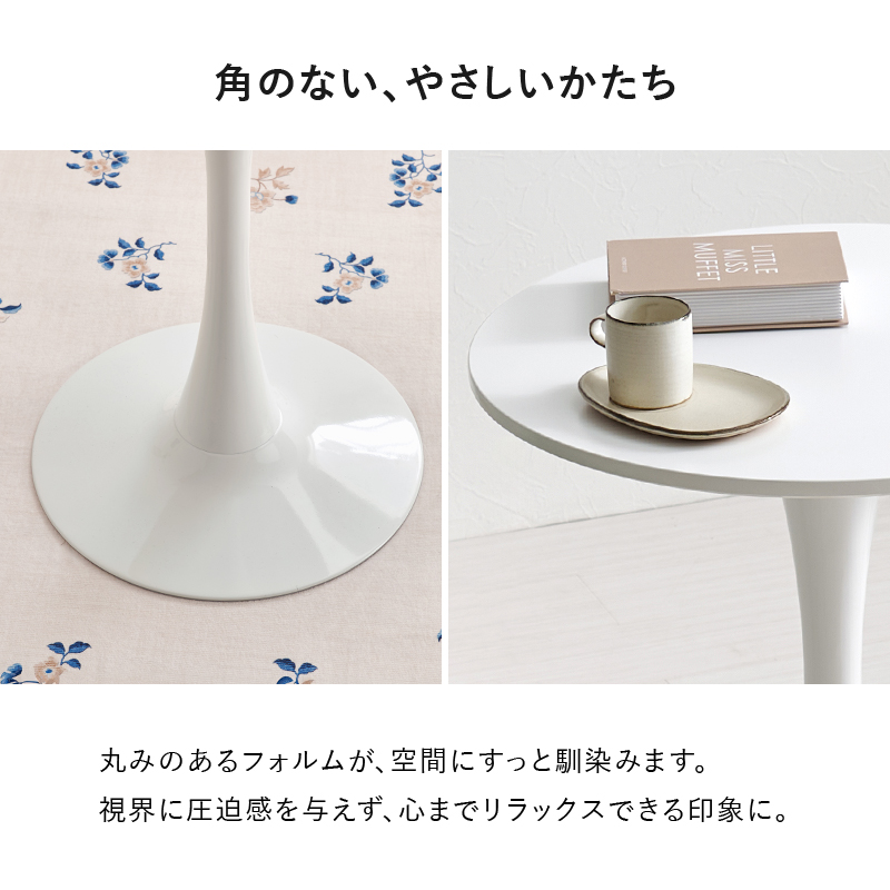 置くだけでお部屋を可愛く彩るカフェテーブル。丸い形はどこに座っても向き合いやすく、会話が弾みます。