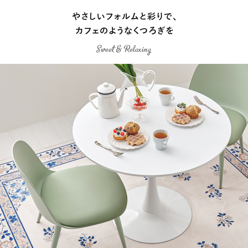 置くだけでお部屋を可愛く彩るカフェテーブル。丸い形はどこに座っても向き合いやすく、会話が弾みます。