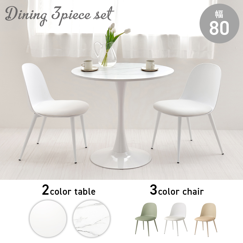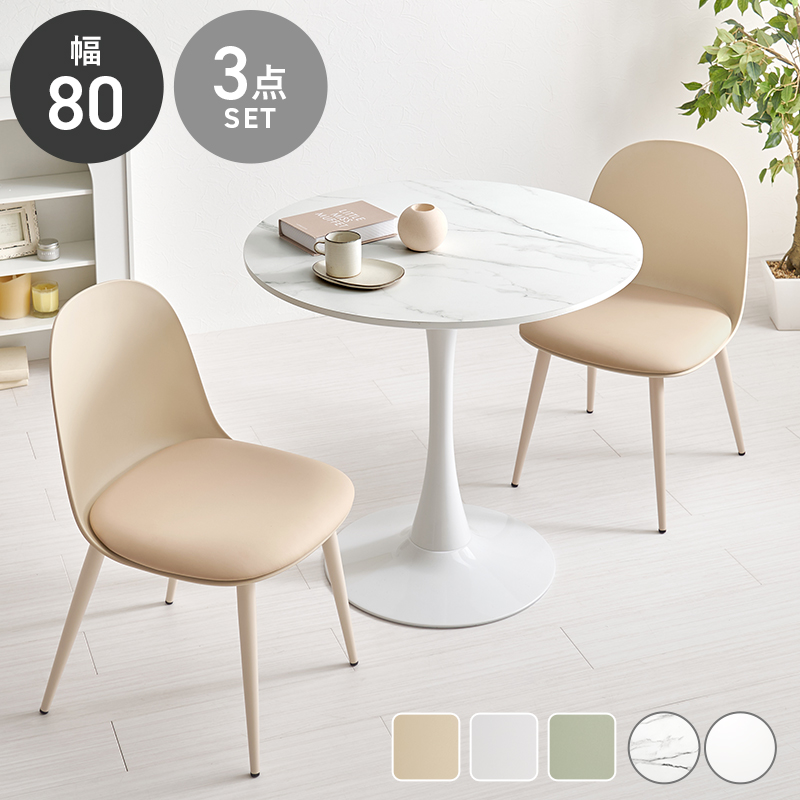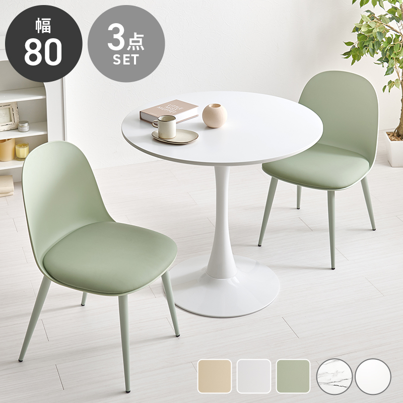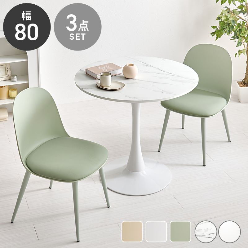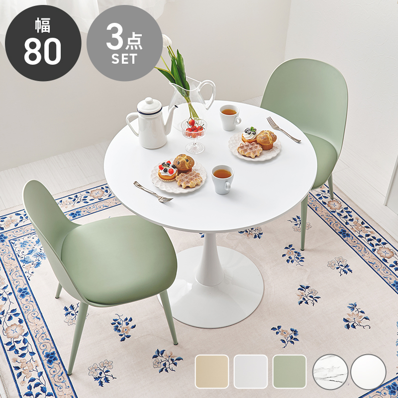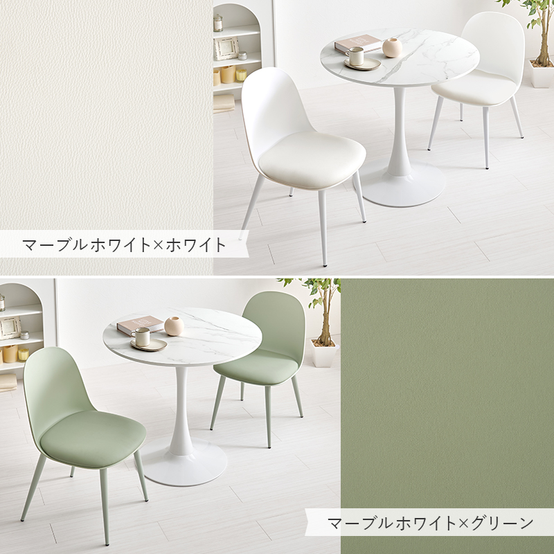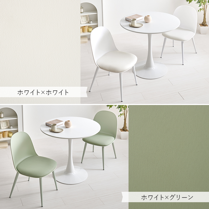 【6種展開】幅80cm カフェテーブルとくすみカラーがかわいいチェア3点セット①