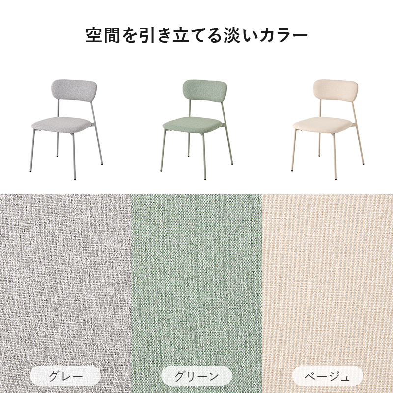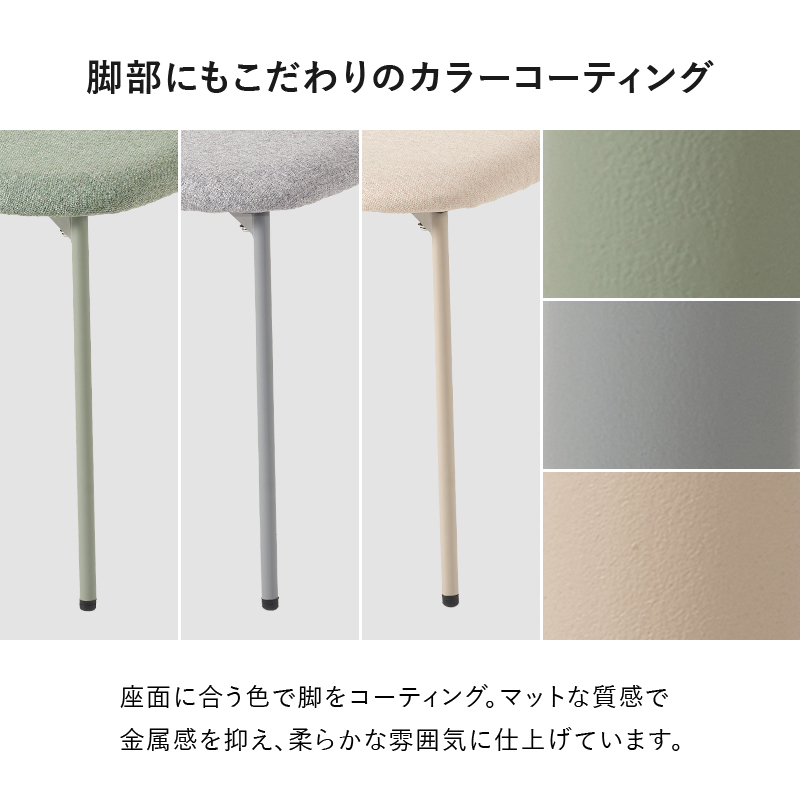 座面に合う色で脚をコーティング。マットな質感で金属感を抑え、柔らかな雰囲気に仕上げています。