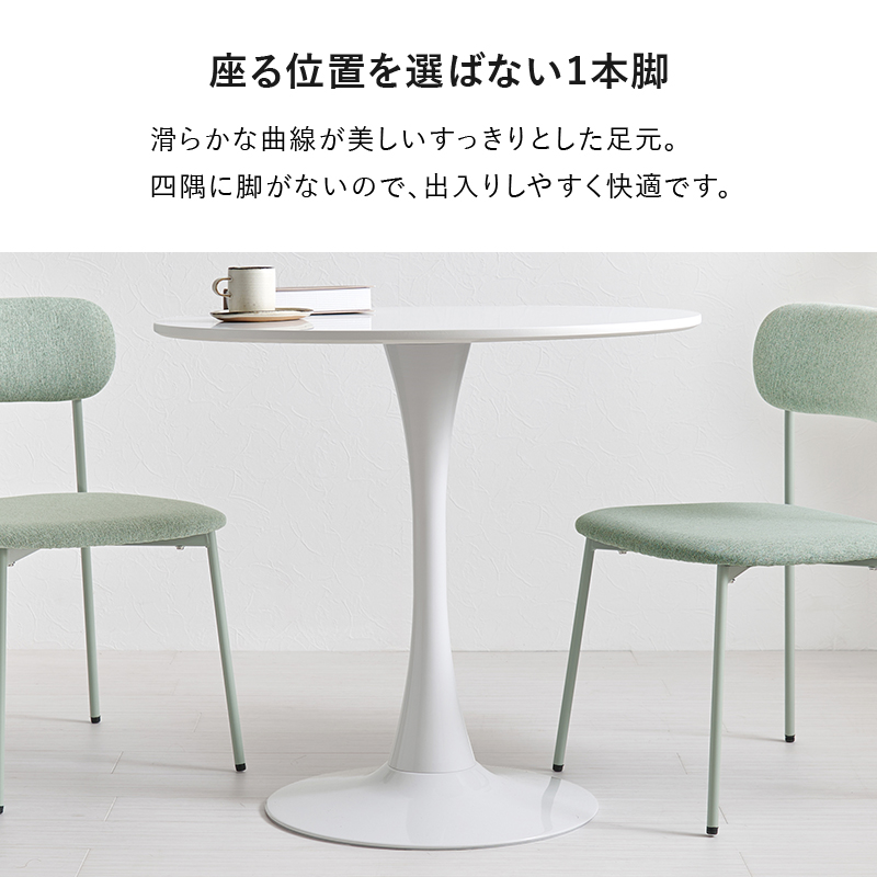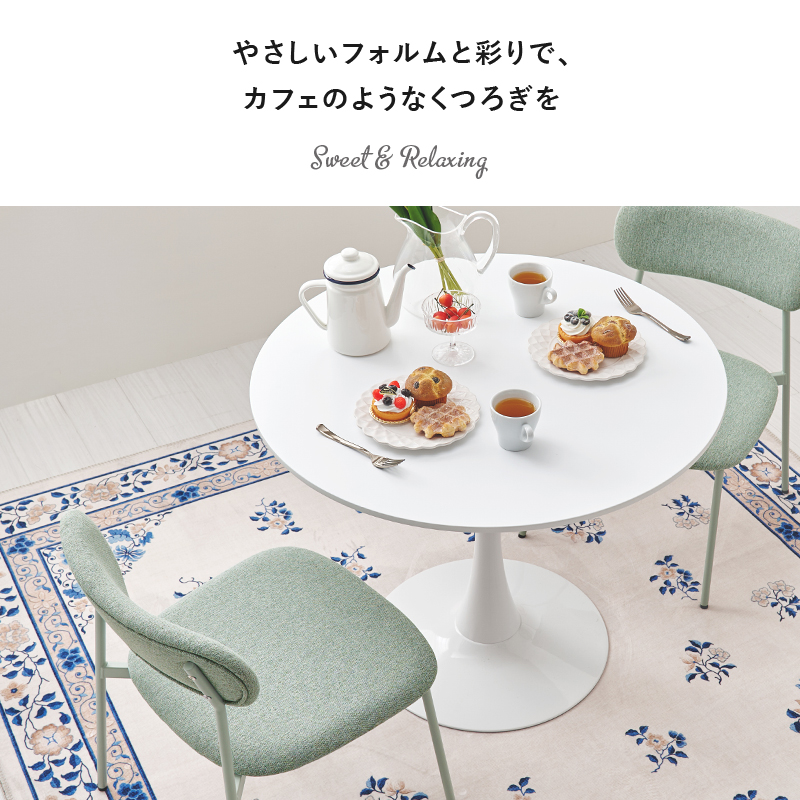 置くだけでお部屋を可愛く彩るカフェテーブル。丸い形はどこに座っても向き合いやすく、会話が弾みます。