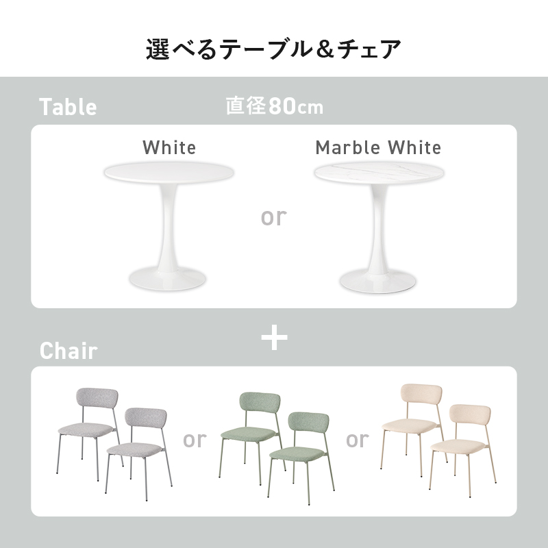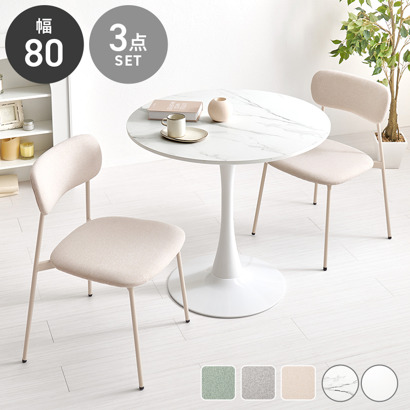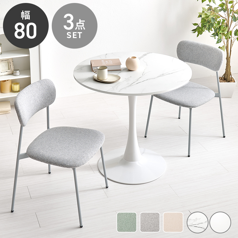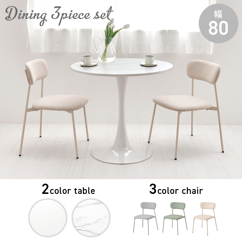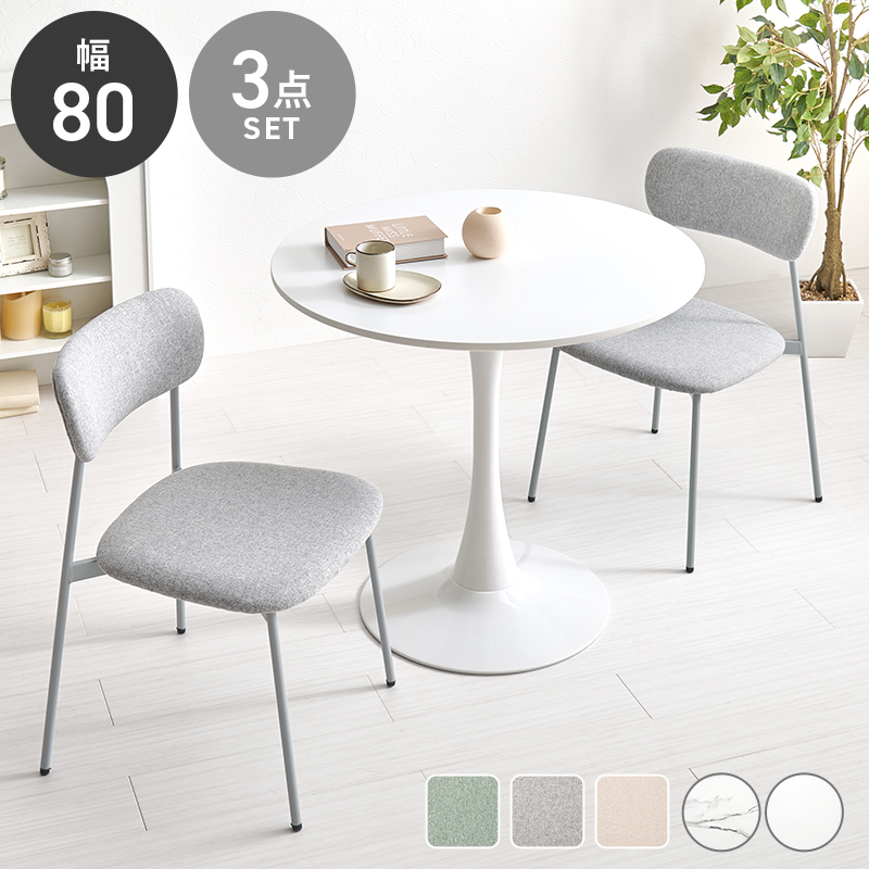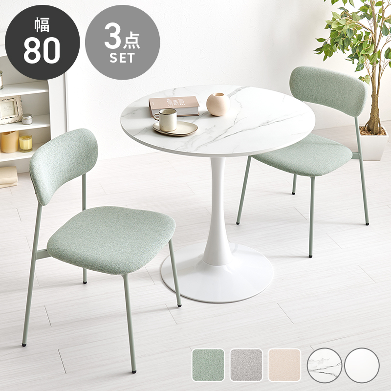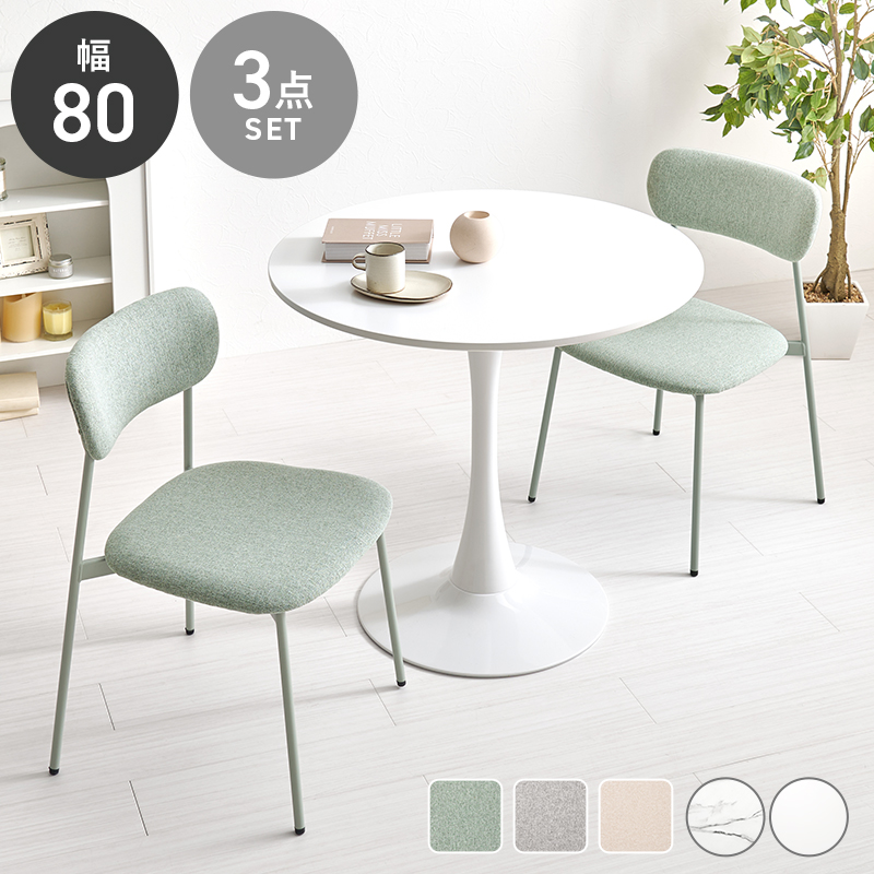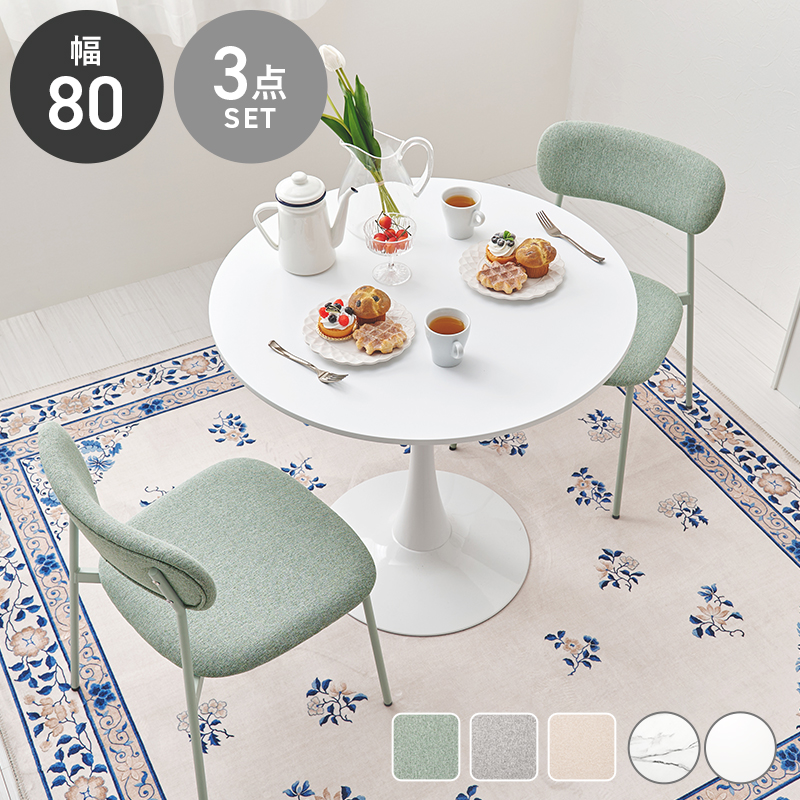 【6種展開】幅80cm カフェテーブルとくすみカラーがかわいいチェア3点セット②