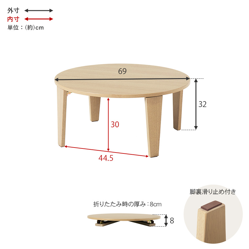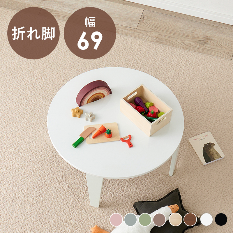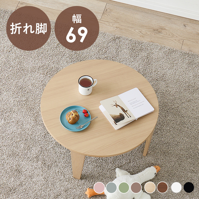 【8色展開】幅69cm コンパクトな折れ脚テーブル 円形タイプ