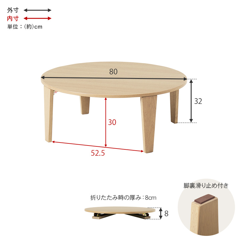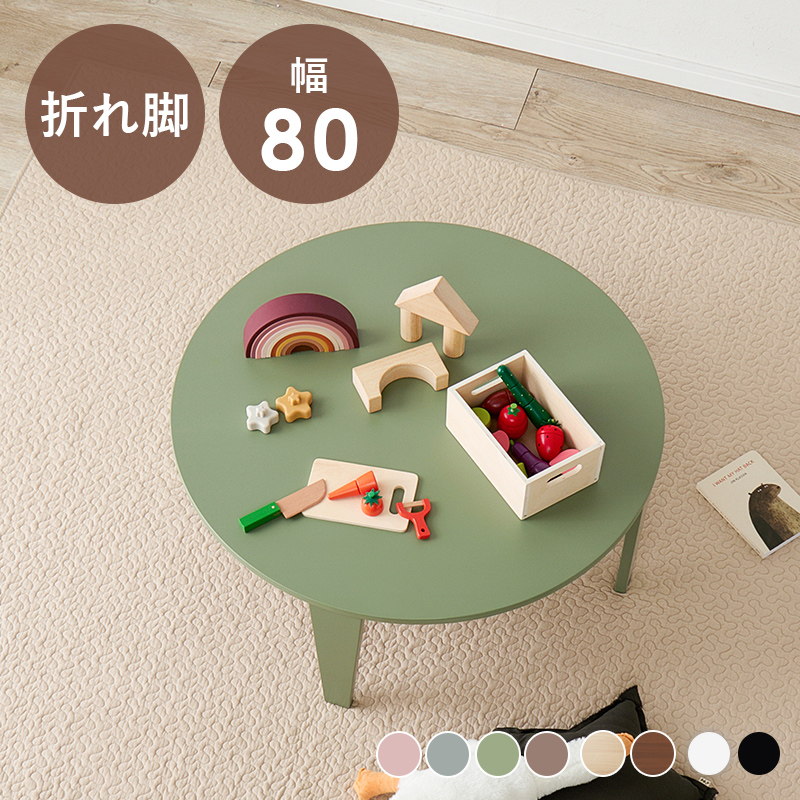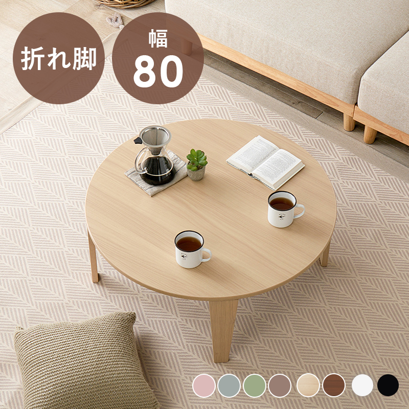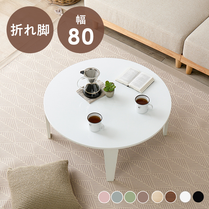 【8色展開】幅80cm 折れ脚テーブル 円形タイプ