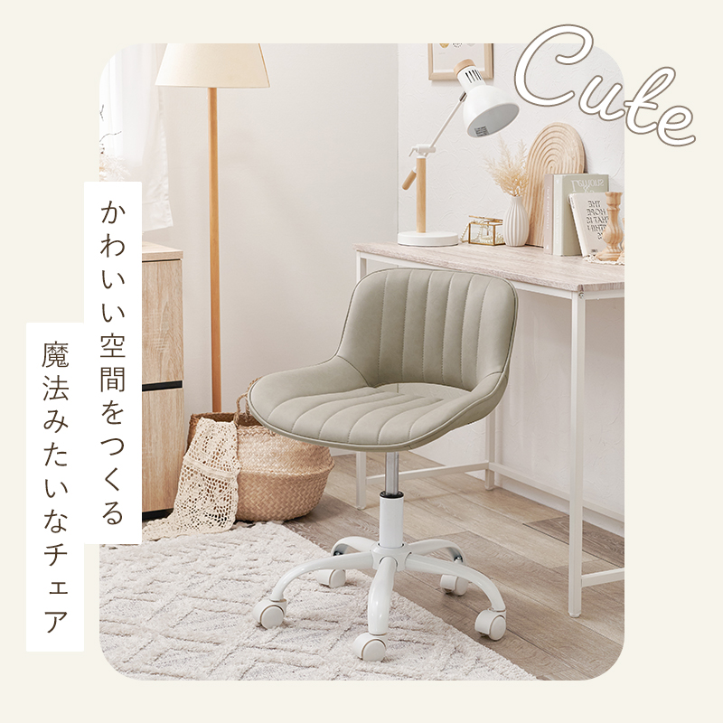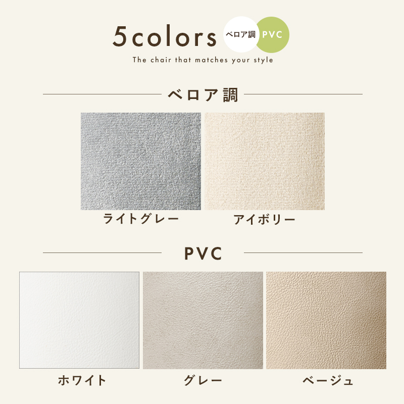 【5色展開】幅55cm ホワイトの足元がかわいいチェア③ アイボリーorライトグレーorベージュorグレーorホワイト