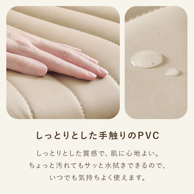 しっとりとした質感で、肌に心地よい。ちょっと汚れてもサッと水拭きできるので、いつでも気持ちよく使えます。