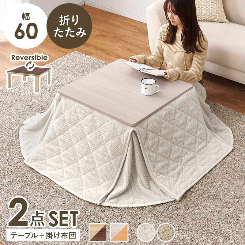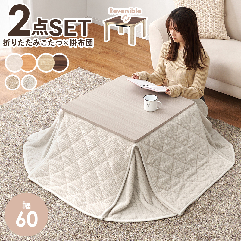 【こたつ+うす掛け布団】4種展開 幅60cm 天板リバーシブル折れ脚こたつ 2点セット ニット柄タイプ