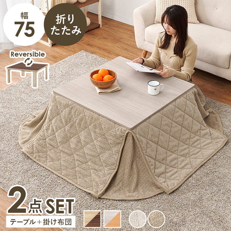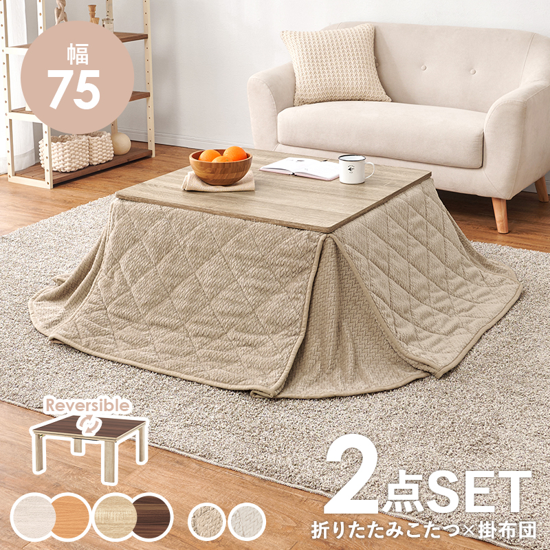 【こたつ+うす掛け布団】4種展開 幅75cm 天板リバーシブル折れ脚こたつ 2点セット ニット柄タイプ