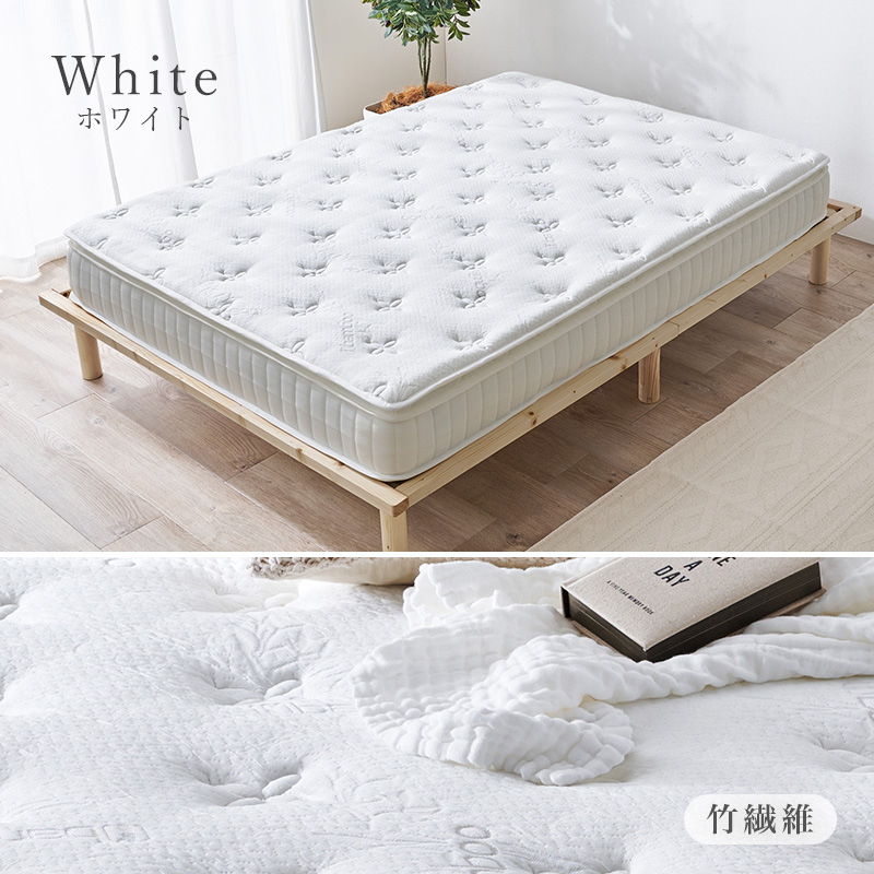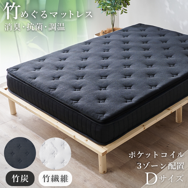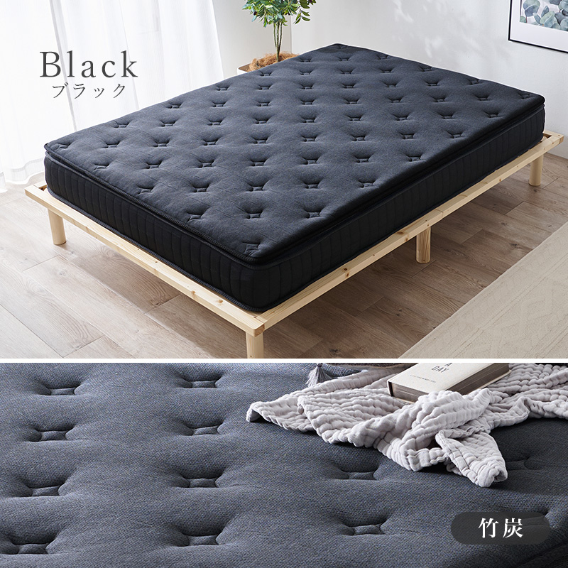 【マットレスのみ】2色展開 ピロートップ付きポケットコイルマットレス ダブルサイズ 竹炭(ブラック)or竹繊維(ホワイト)