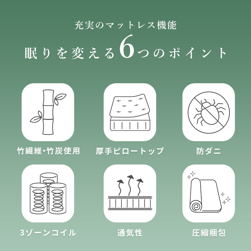 竹炭を練り込んだ繊維がにおいを消臭、抗菌。マットレスや寝具にこもりがちな空気を整えすっきりと快適に。