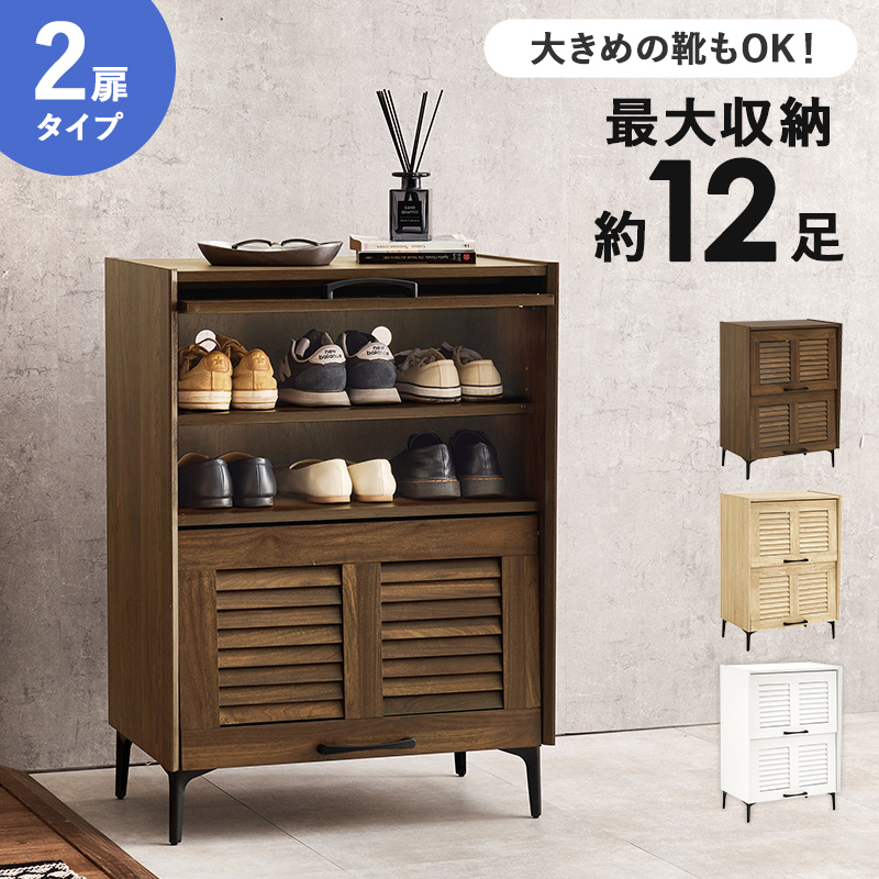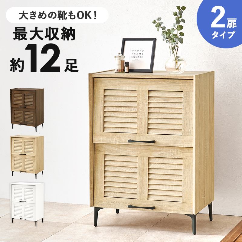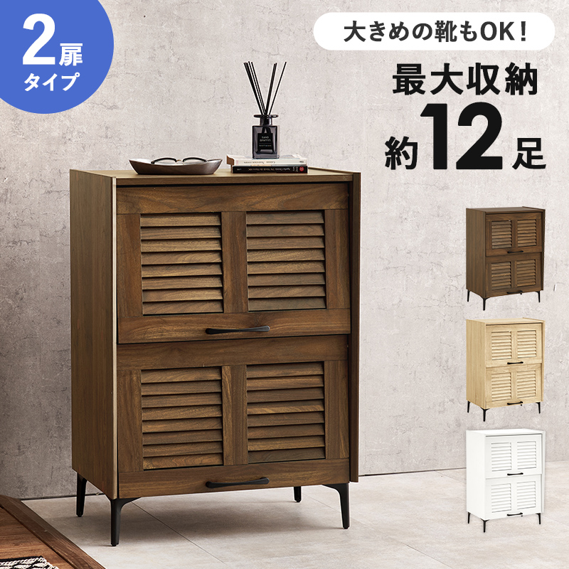 【3色展開】幅61cm スチール脚がおしゃれなシューズラック 2扉タイプ ブラウンorナチュラルorホワイト