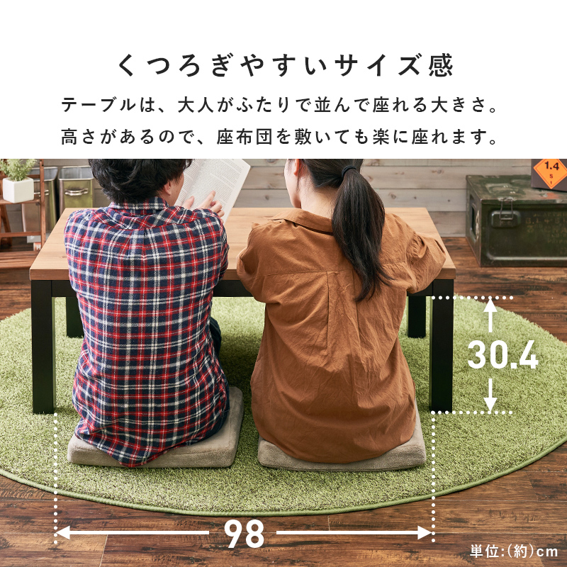 テーブルは、大人2人で並んで座れる多きあ。高さがあるので、座布団を敷いても楽に座れます。