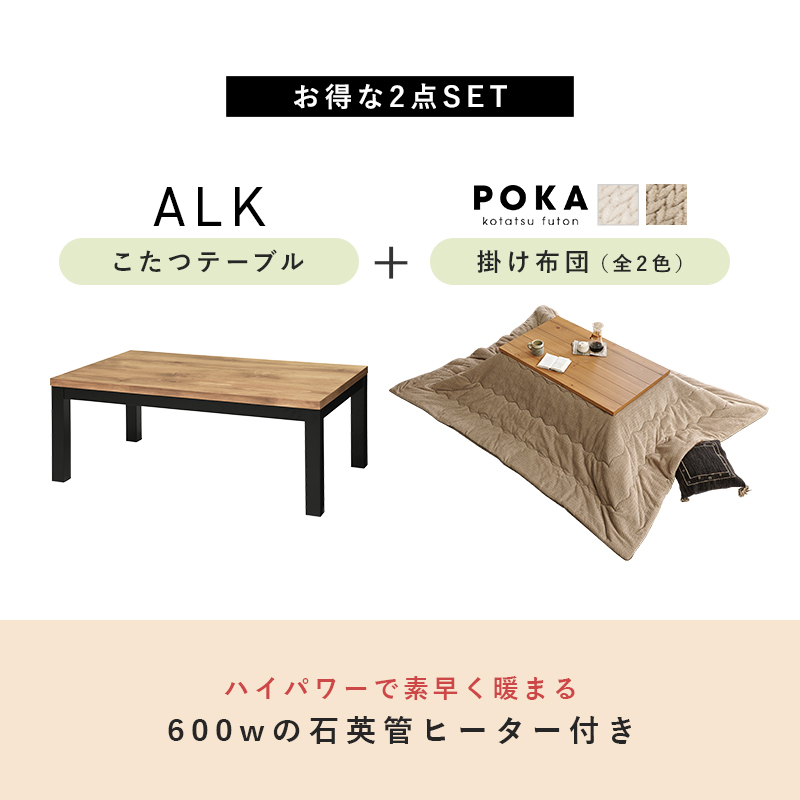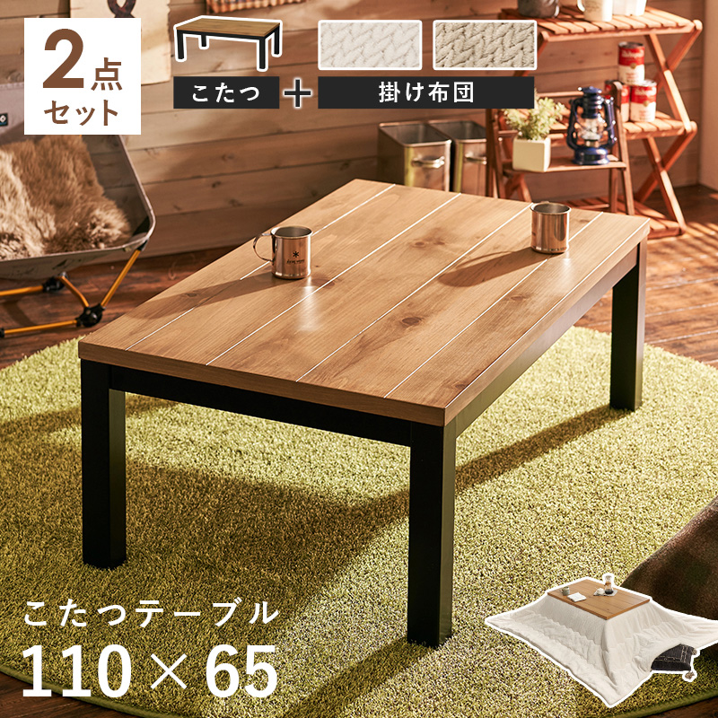 【こたつ+うす掛け布団】2色展開 幅110cm ロッジ風天然木のこたつ 2点セット グレージュorアイボリー