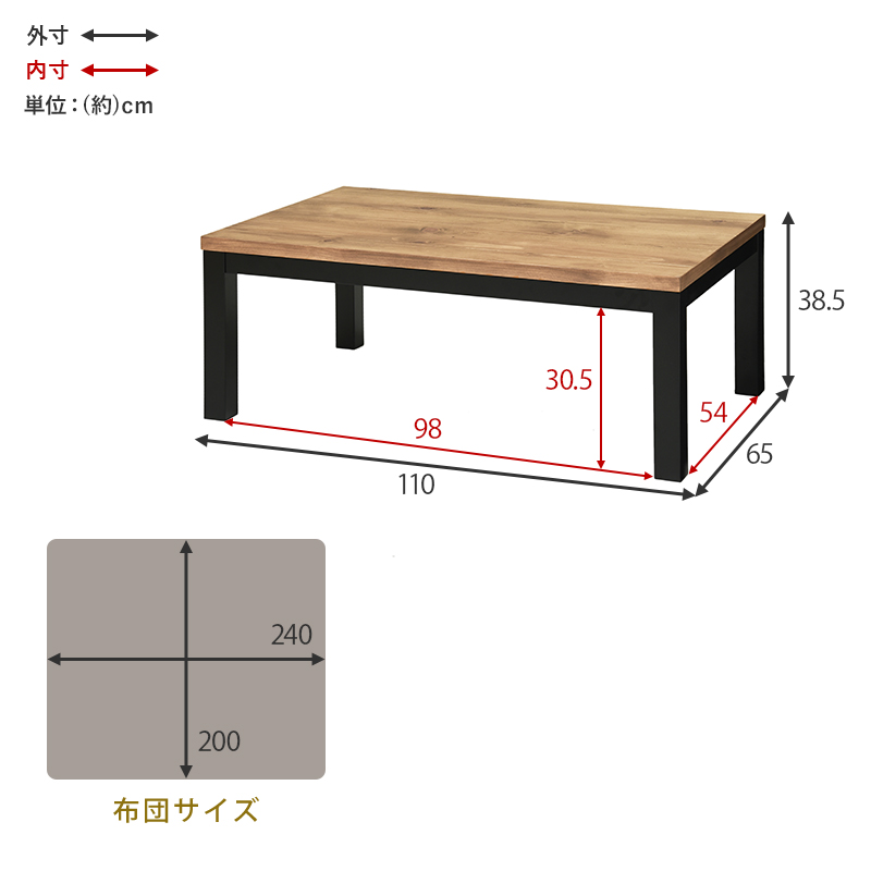 こたつ:(約)幅110×奥行65×高さ38.5cm
