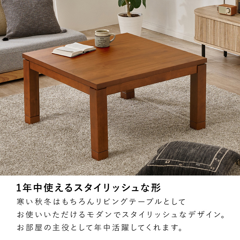 寒い冬はもちろん、リビングテーブルとしてお使いいただけるモダンでスタイリッシュなデザイン。お部屋の主役として年中活躍してくれます。