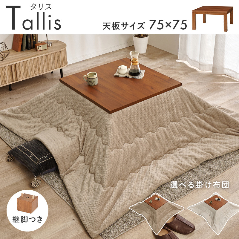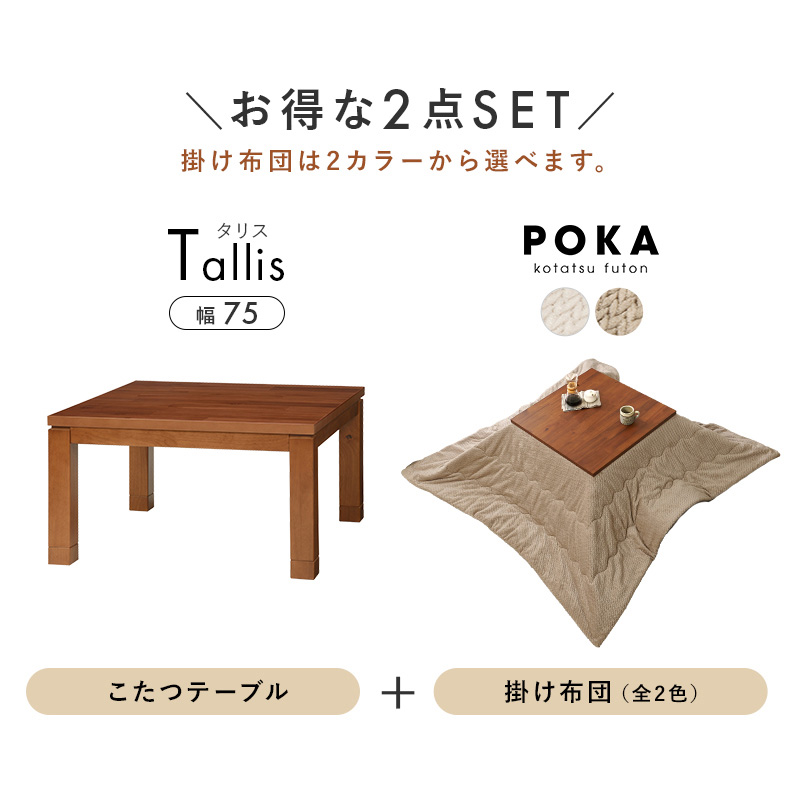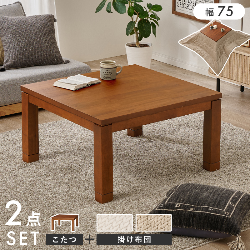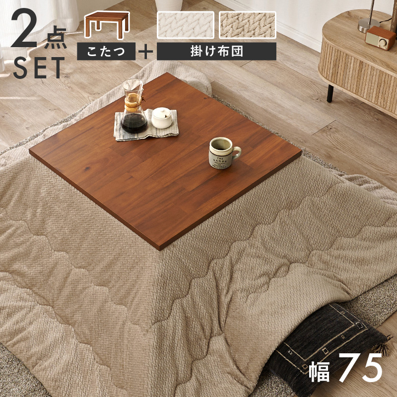 【こたつ+うす掛け布団】2色展開 幅75cm 深みのある褐色と木目が美しいこたつ 2点セット グレージュorアイボリー