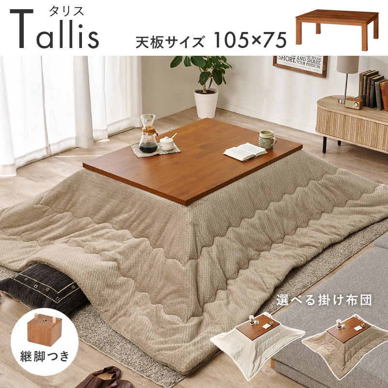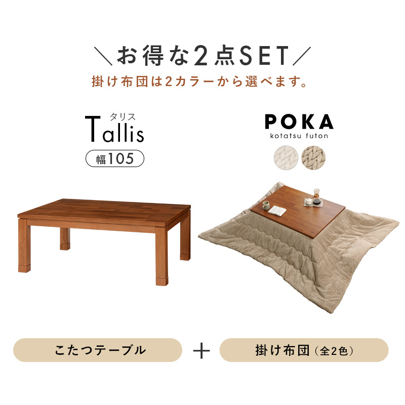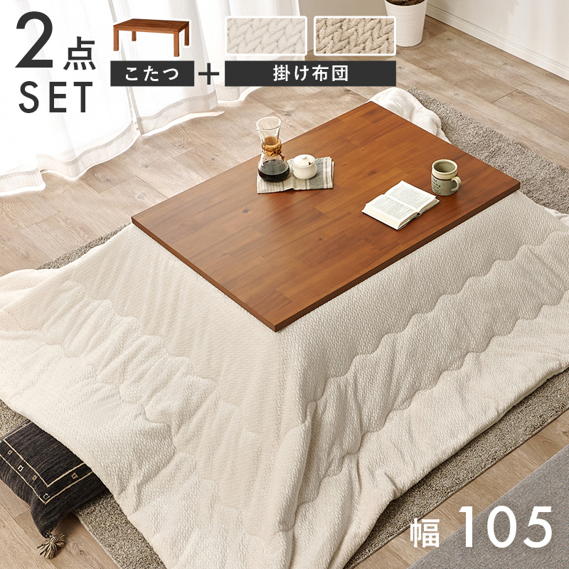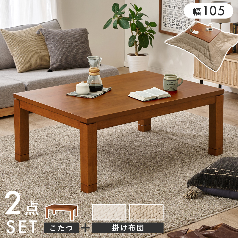 【こたつ+うす掛け布団】2色展開 幅105cm 深みのある褐色と木目が美しいこたつ 2点セット グレージュorアイボリー