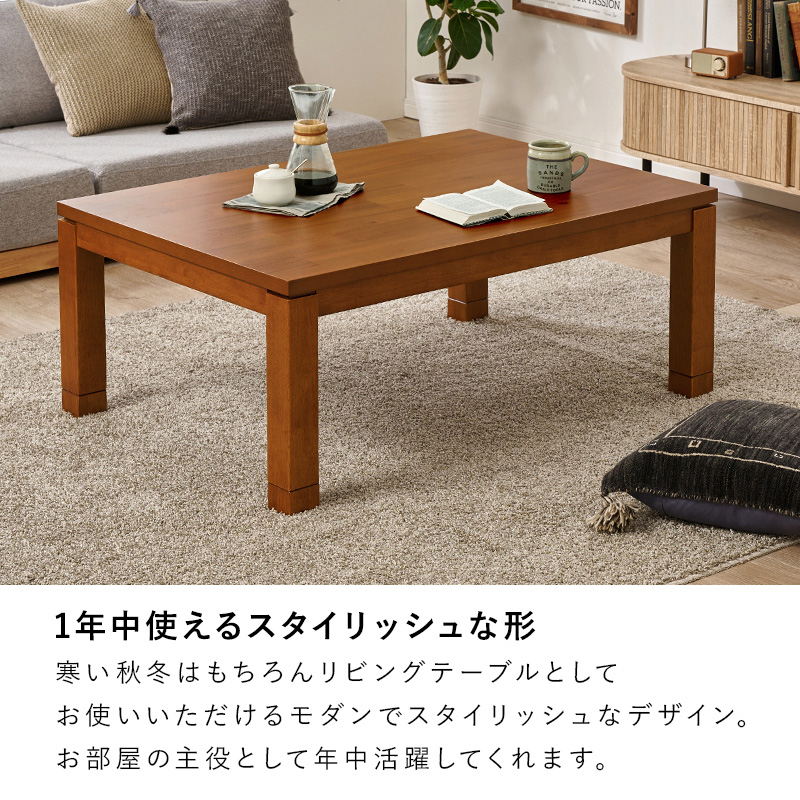 寒い冬はもちろん、リビングテーブルとしてお使いいただけるモダンでスタイリッシュなデザイン。お部屋の主役として年中活躍してくれます。
