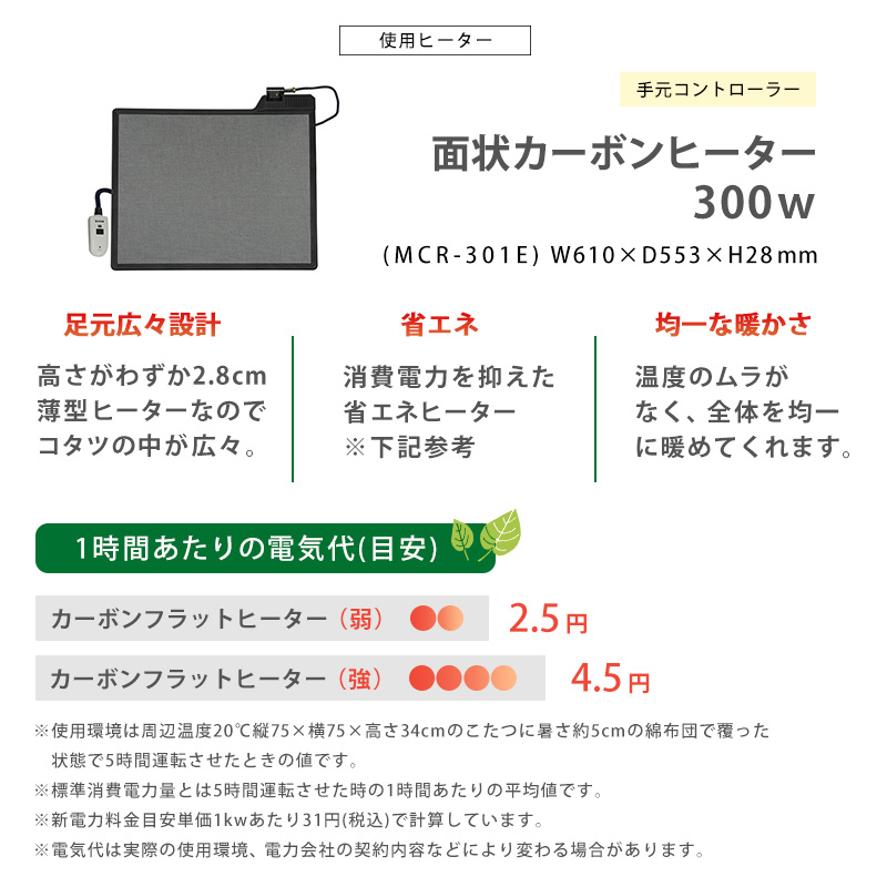 こたつ:<天板>天然木化粧繊維板(UV塗装)<脚部>ラバーウッド