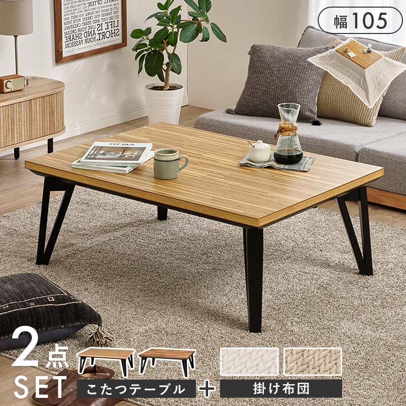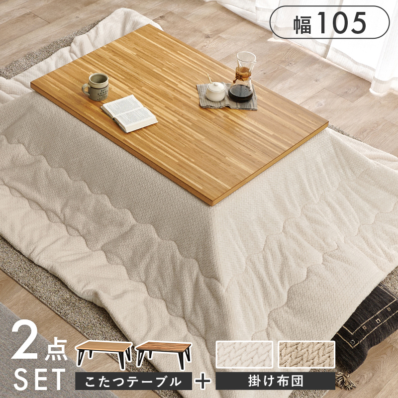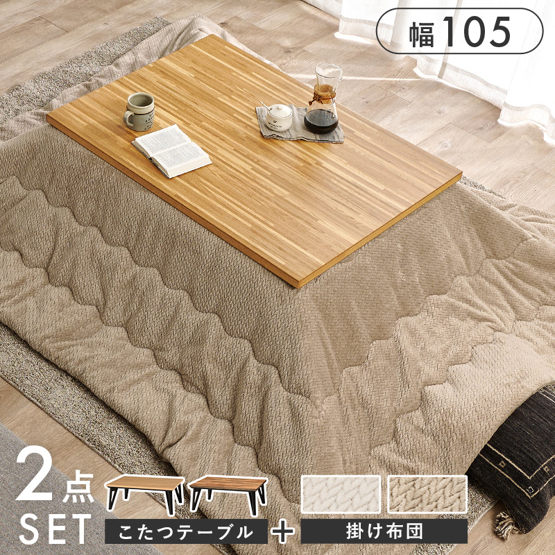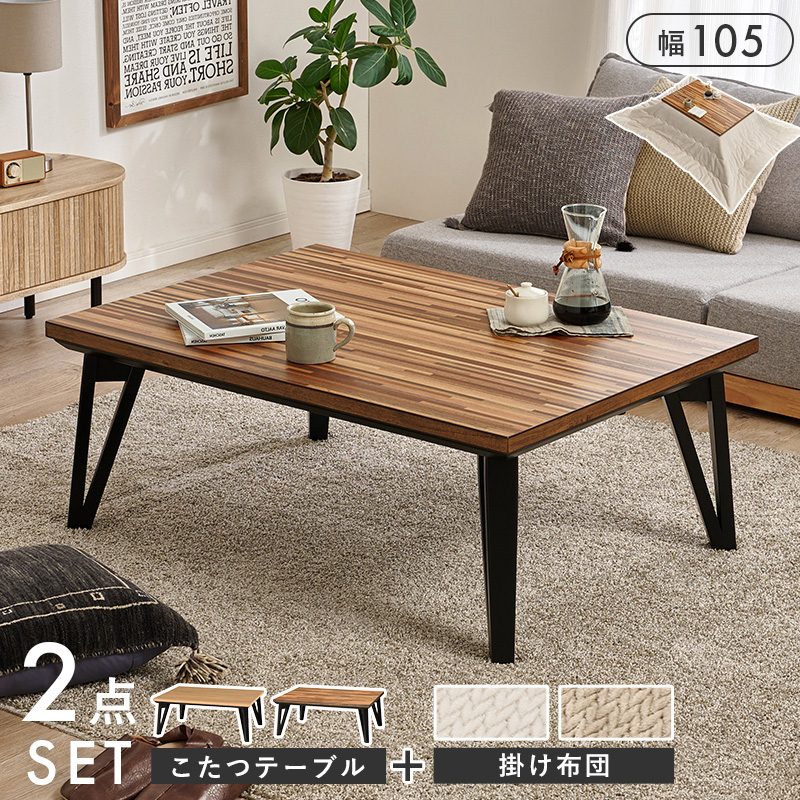 【こたつ+うす掛け布団】4種展開 幅105cm 寄木細工調の天板がおしゃれなこたつ 2点セット