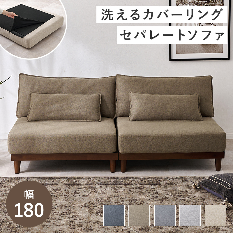 【5色展開】幅180cm あぐらもごろ寝もできちゃう3人掛けソファ ブラウンorネイビーorベージュorダークグレーorライトグレー