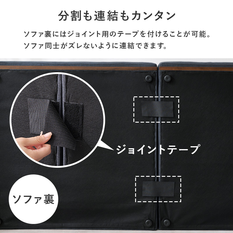 移動が大変なソファでも分割タイプだから、気軽に模様替えを楽しめます。