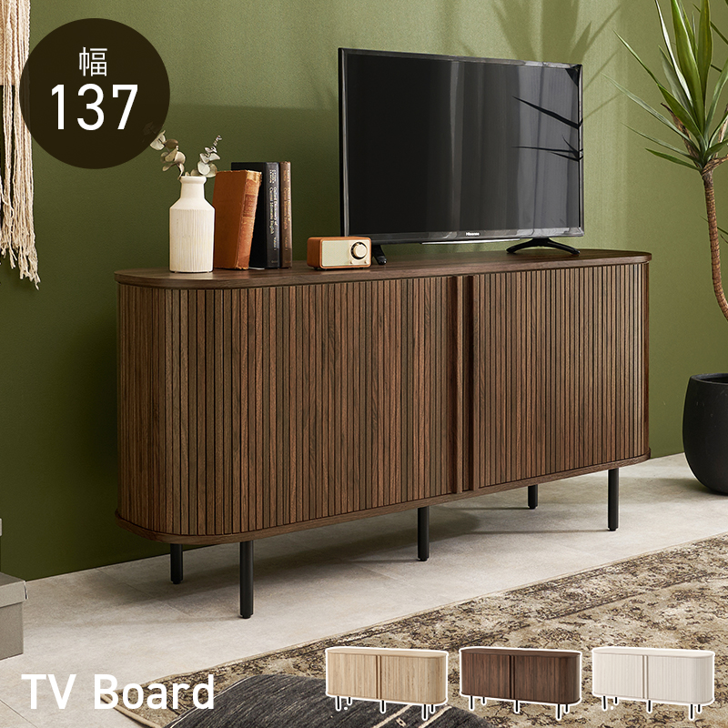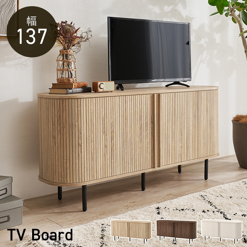 【3色展開】幅137cm 縦のラインが美しく映えるテレビ台 ハイタイプ ブラウンorナチュラルorホワイト