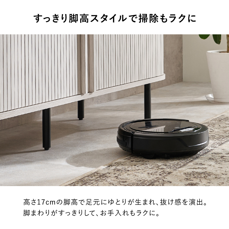 高さ17cmの脚高で足元にゆとりが生まれ、抜け感を演出。脚まわりがすっきりして、お手入れもラクに。