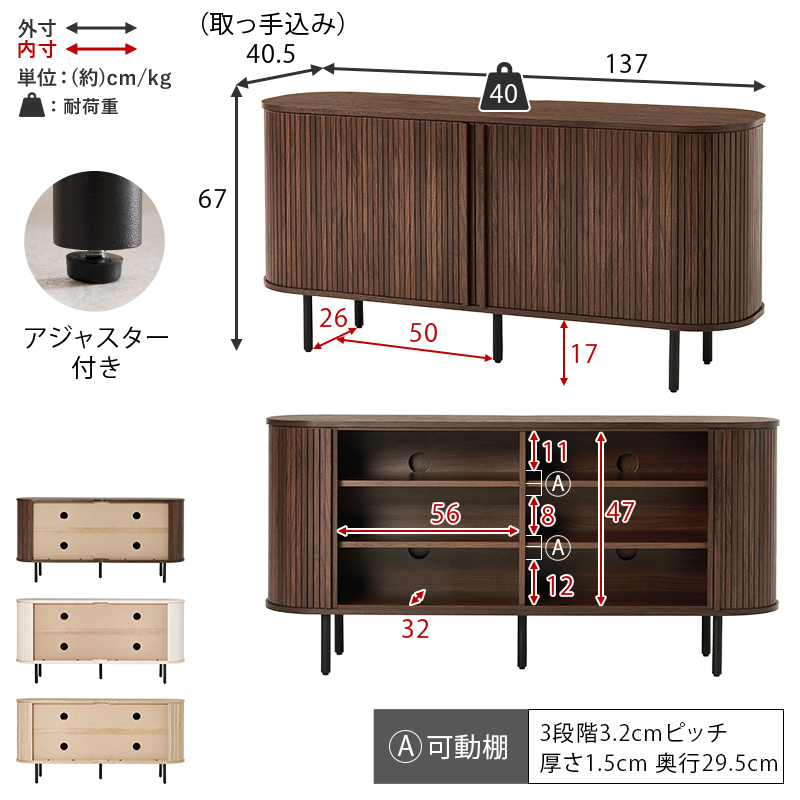 (約)幅137×奥行40.5×高さ67cm