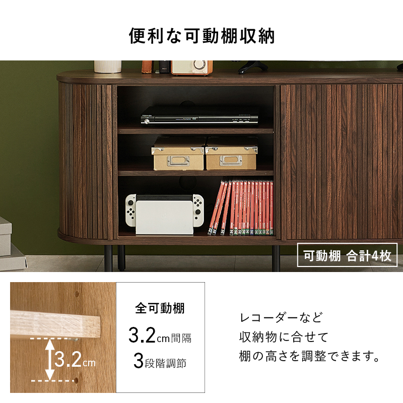 レコーダーなど、収納物に合わせて棚の高さを調節できます。