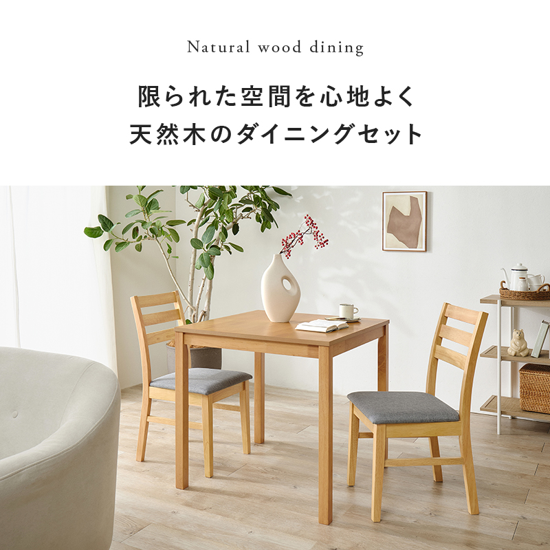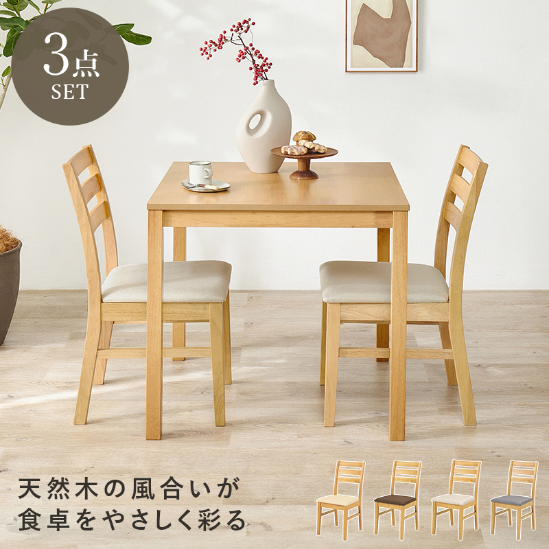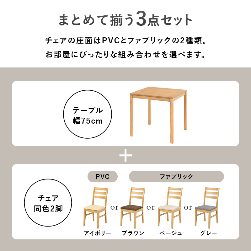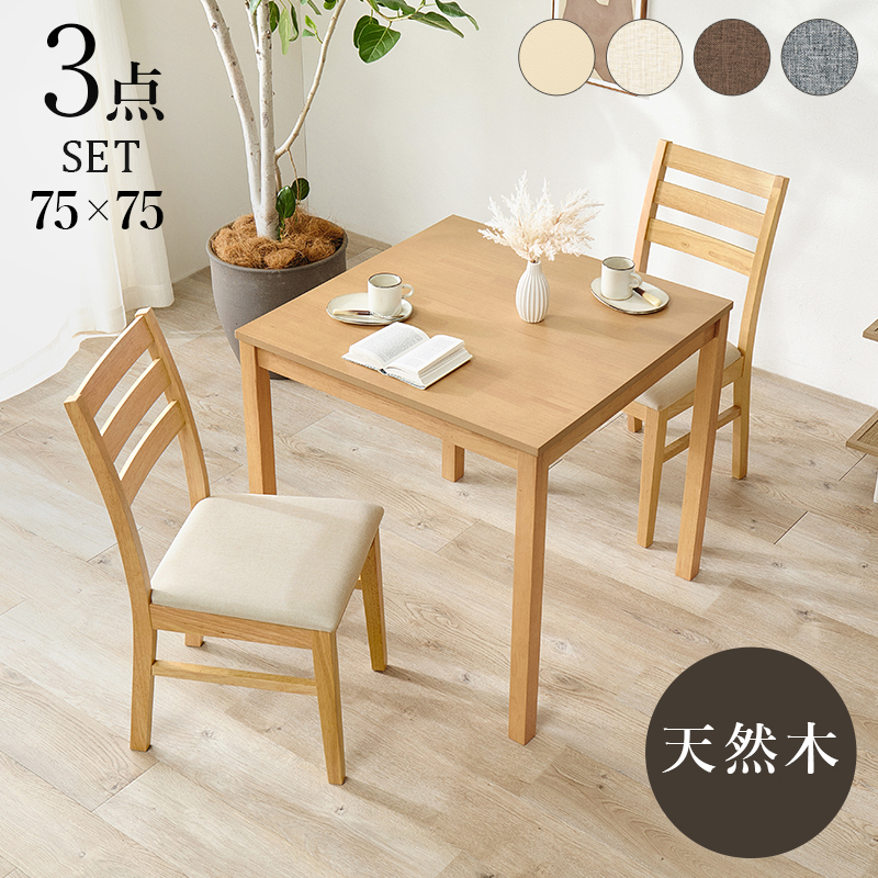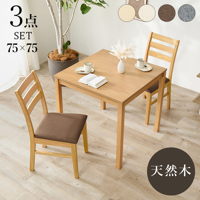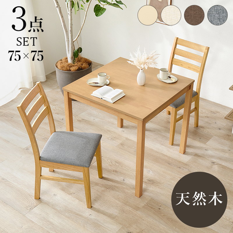 【4色展開】幅75cm 天然木の風合いがやさしい印象のダイニング3点セット 正方形タイプ ベージュorブラウンorグレーorアイボリー