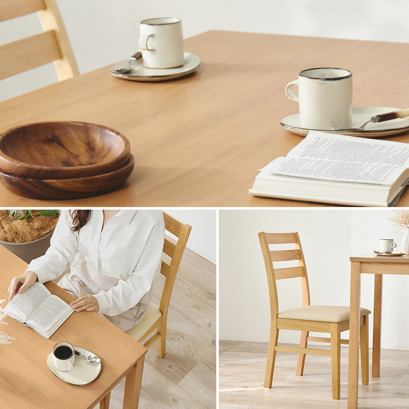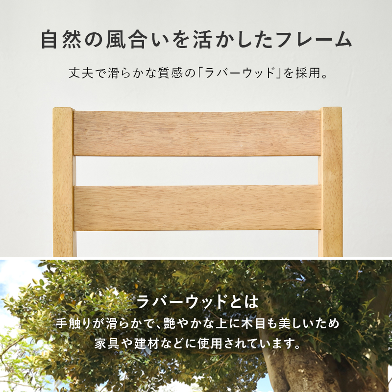使い込むほど深みが出るラバーウッド突板の天板。木目から、天然木の豊かな表情が感じられます。