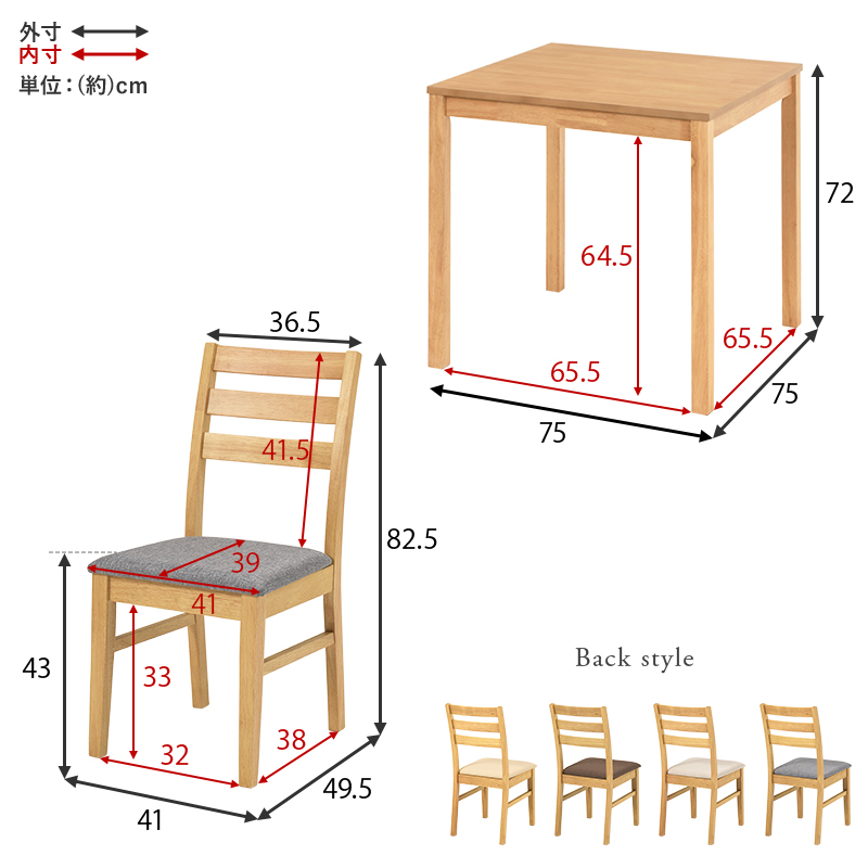チェア:(約)幅41×奥行49.5×高さ82.5×座面高43cm