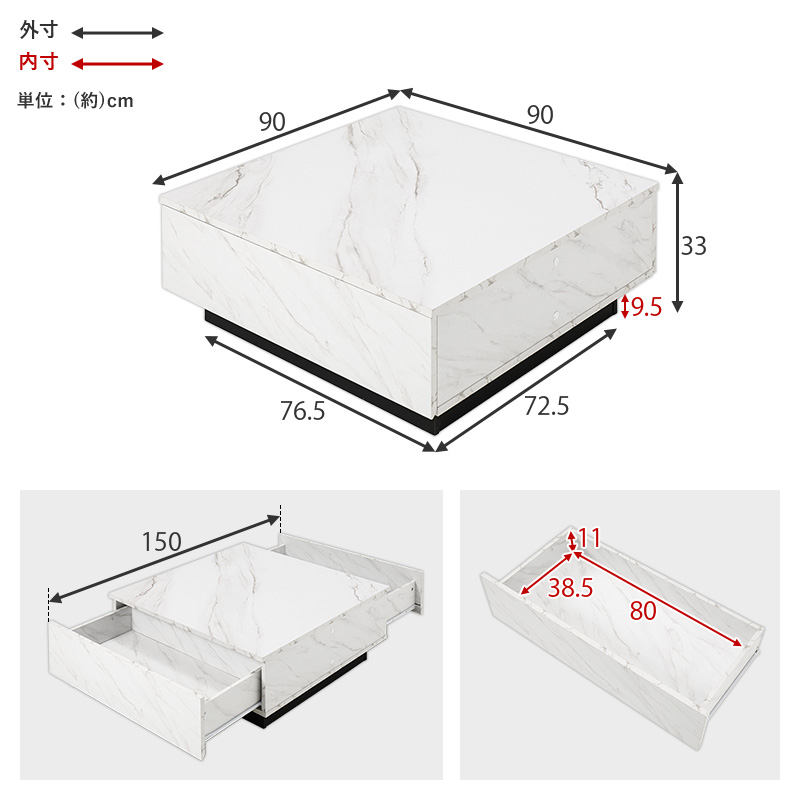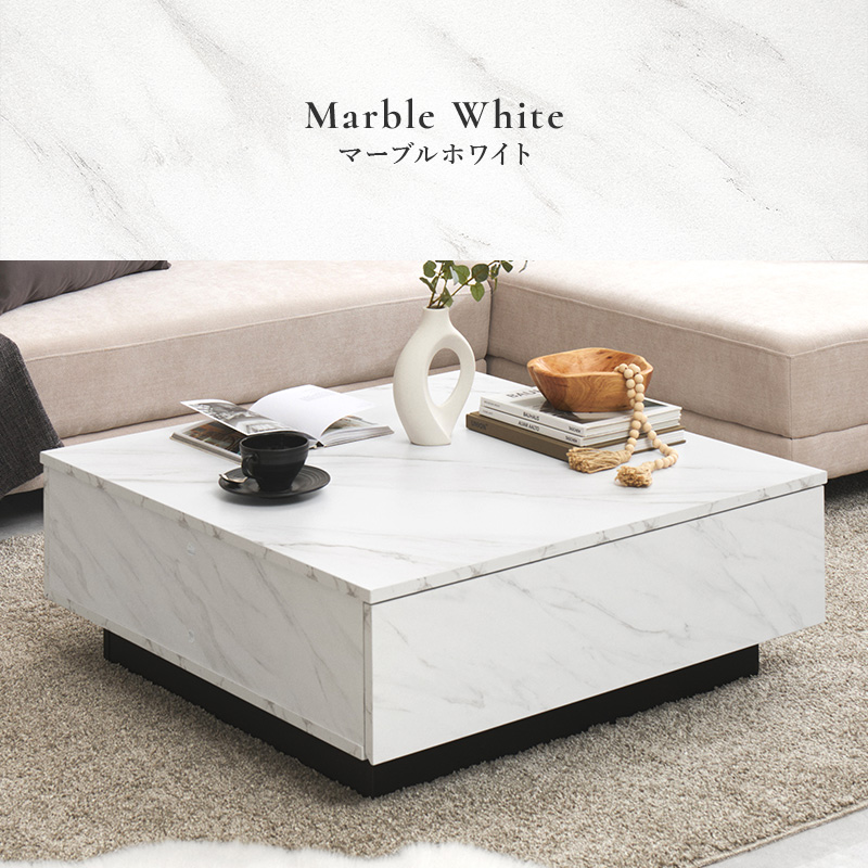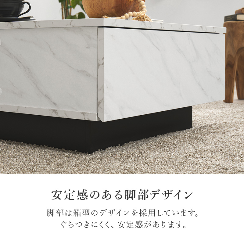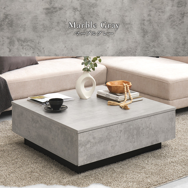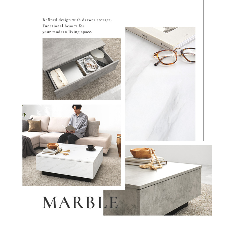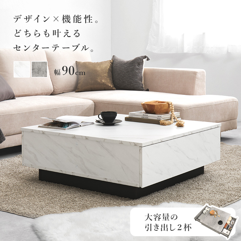 【2色展開】幅90cm 石目調がおしゃれなセンターテーブル 引き出し2杯タイプ マーブルグレーorマーブルホワイト