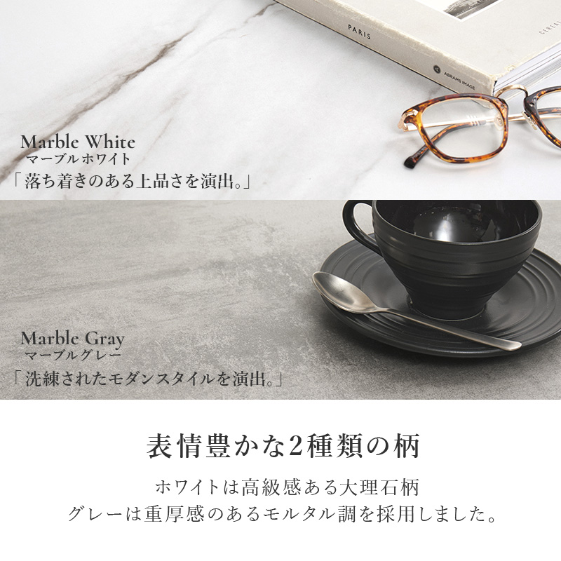 落ち着きある上品さを演出。高級感のある、大理石調を採用しました。