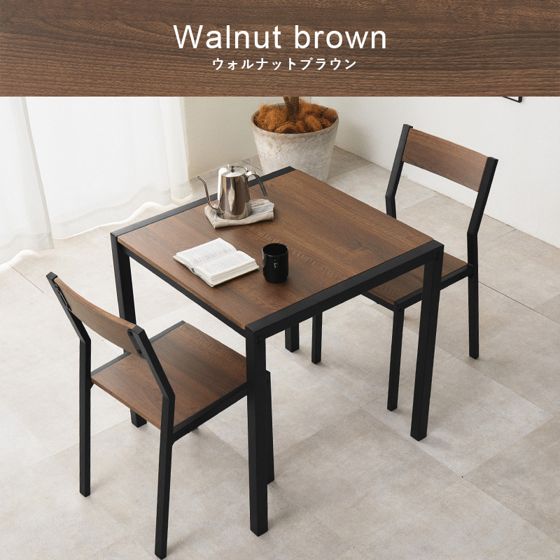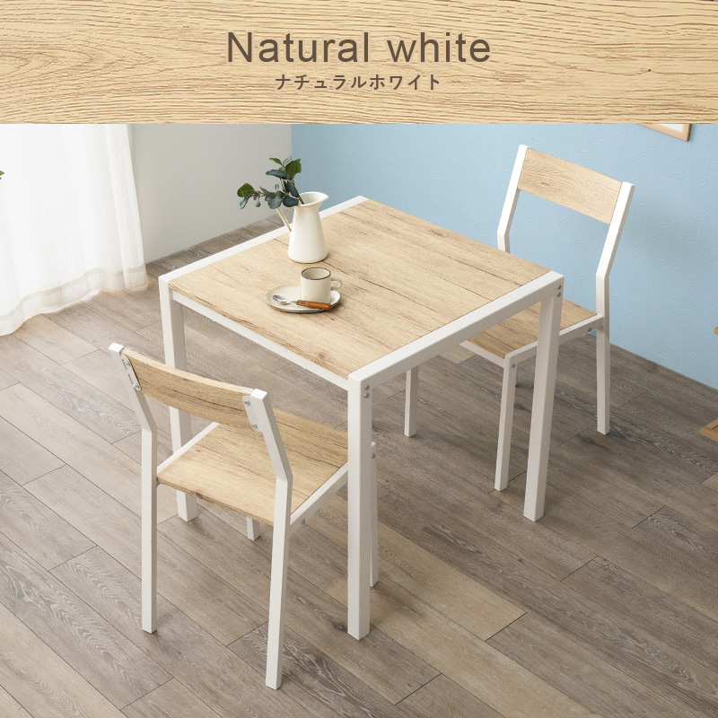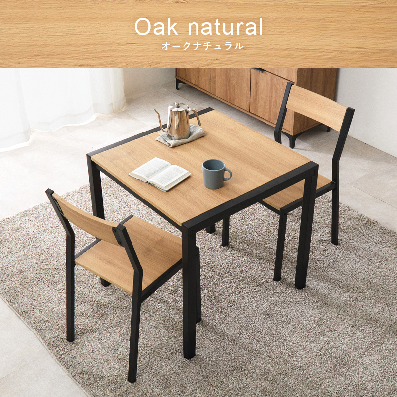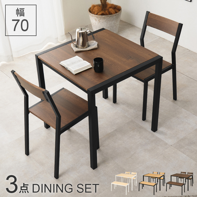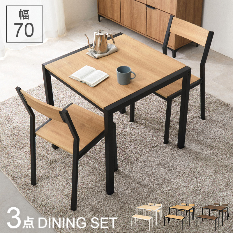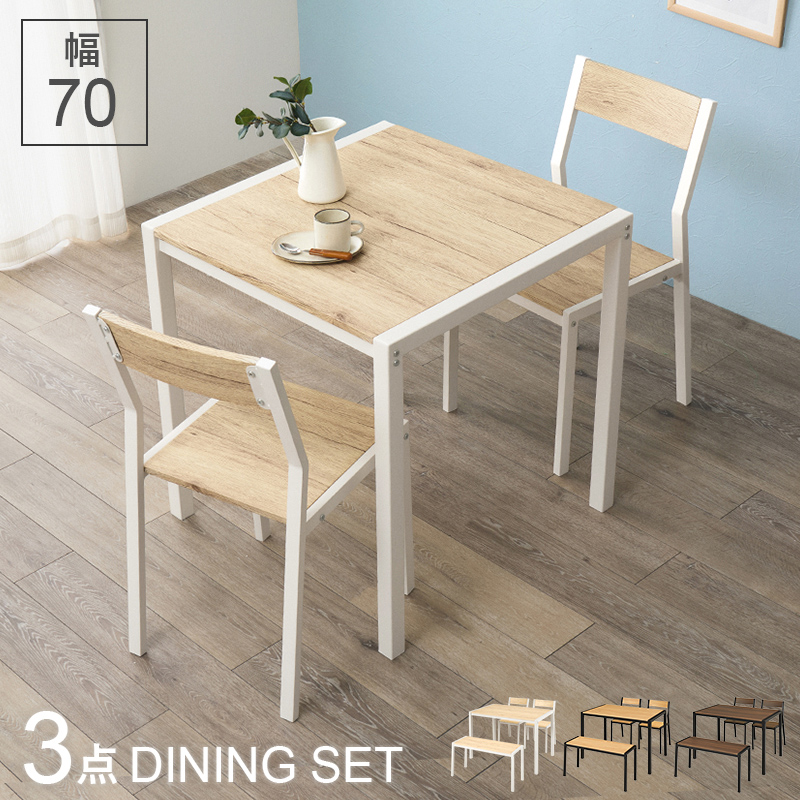 【3色展開】幅70cm 木目調とアイアンフレームのダイニング3点セット ナチュラルホワイトorオークナチュラルorウォルナットブラウン