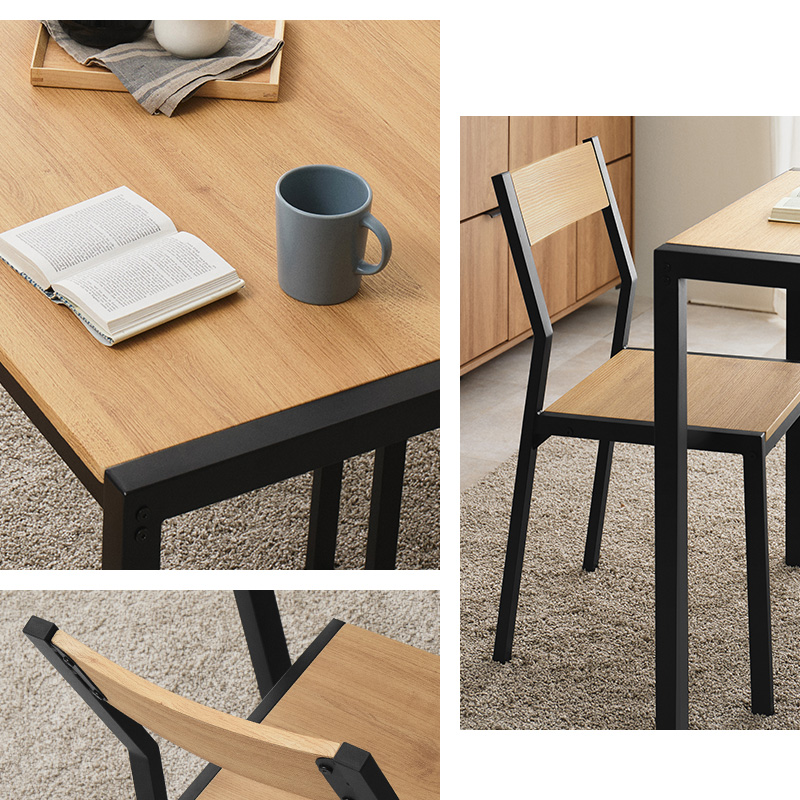 温かな木目調を引き立てる、アイアンとの組み合わせ。飾らないシンプルなデザインがダイニングと調和し、自然体でゆったりと過ごせる空間をつくります。